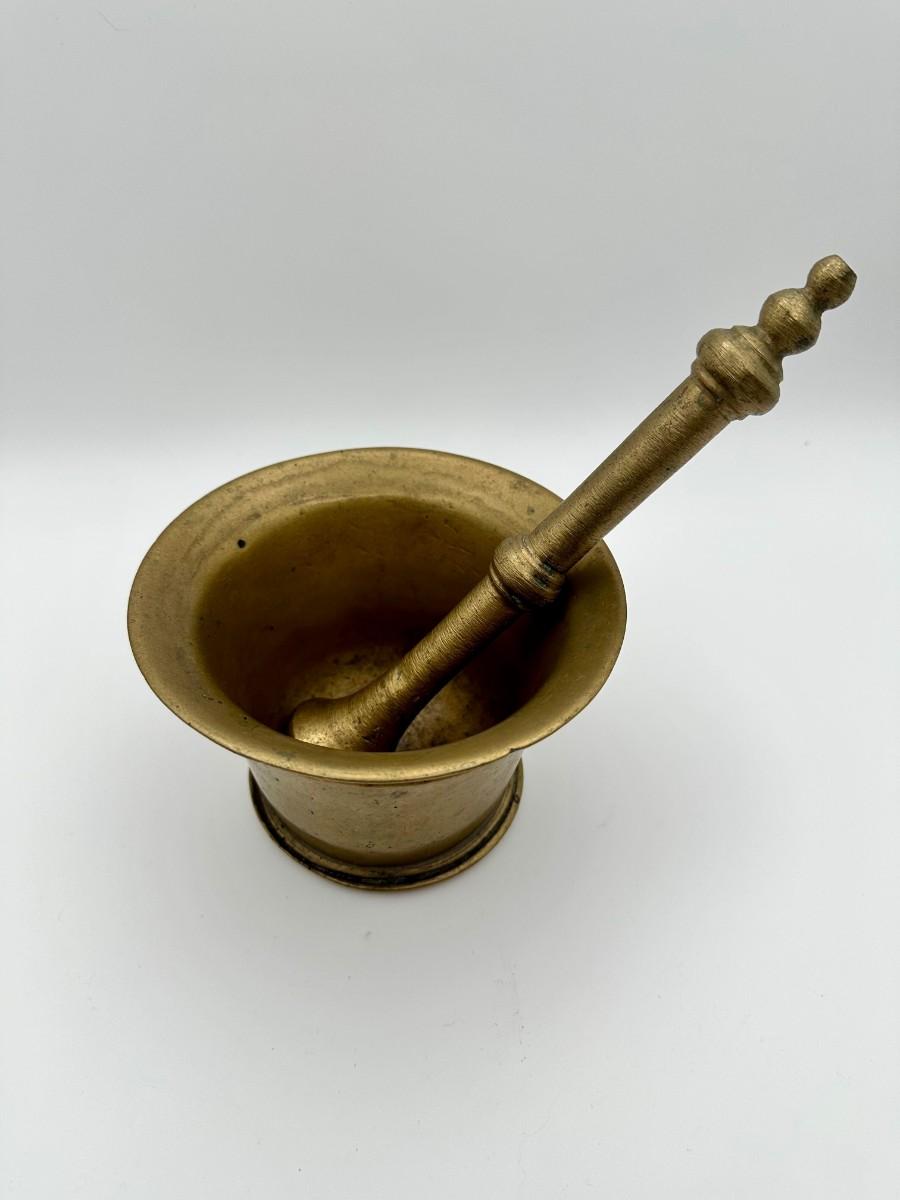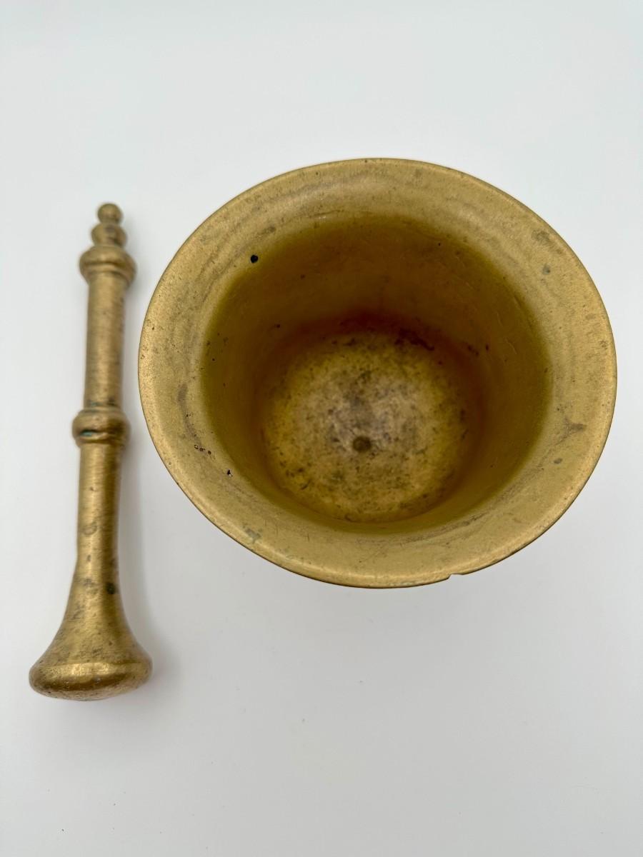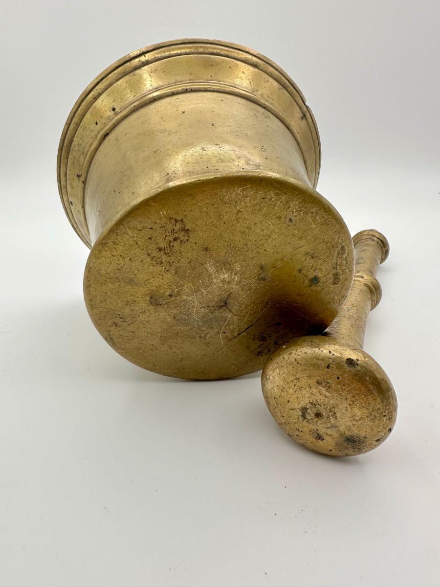 Antique European Solid Heavy Brass Apothecary Mortar and Pestle
