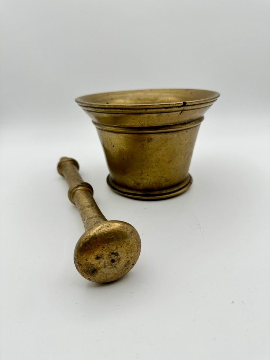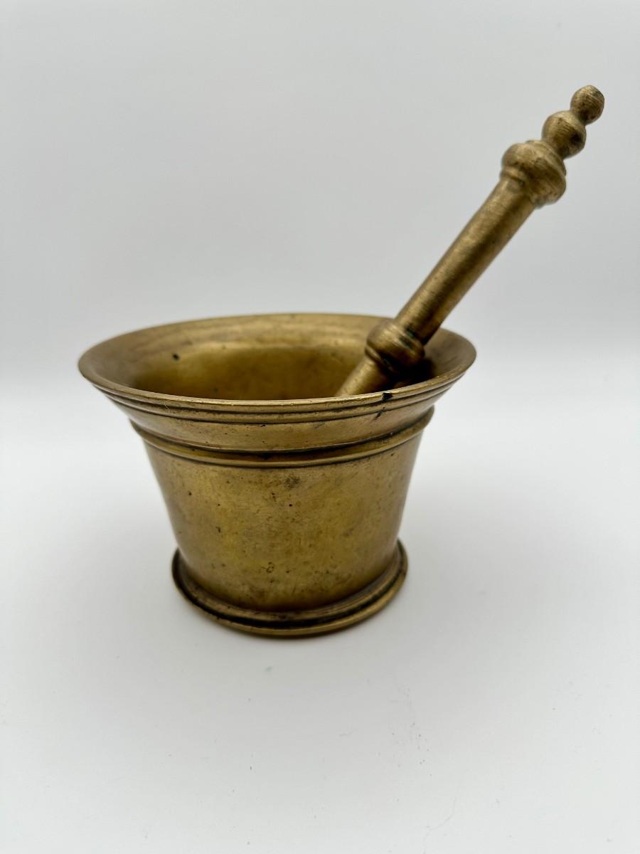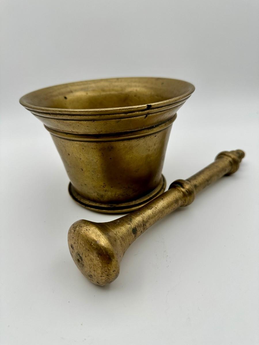 Antique European Solid Heavy Brass Apothecary Mortar and Pestle