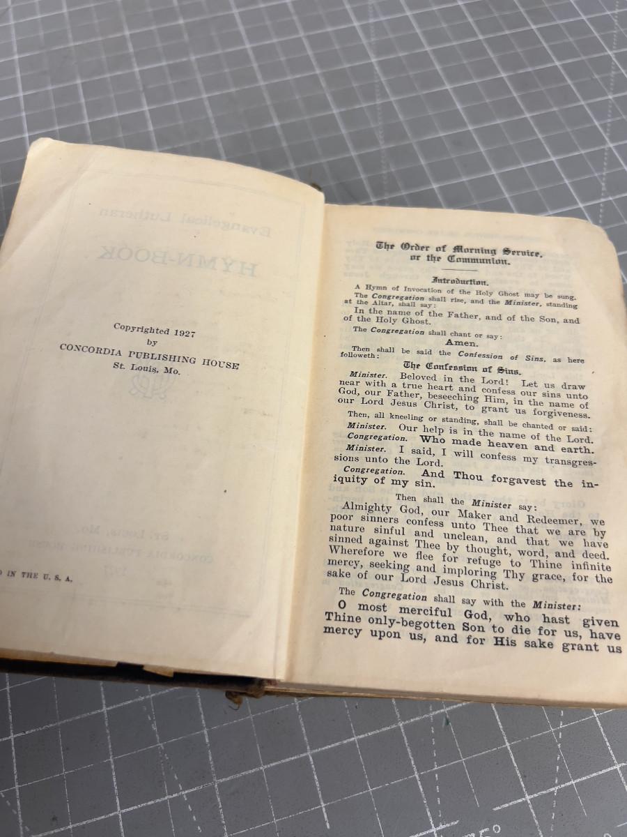 Antique Evangelical Lutheran HYMN Book Dated 1927 COLLECTIBLE