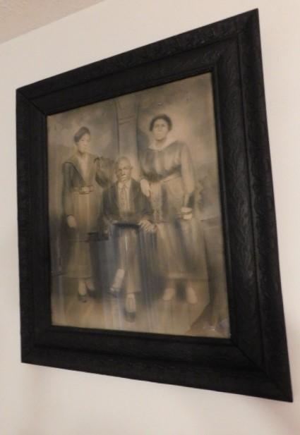 Antique Family Portrait Photo Framed 27"x23" frame needs to be re-tacked