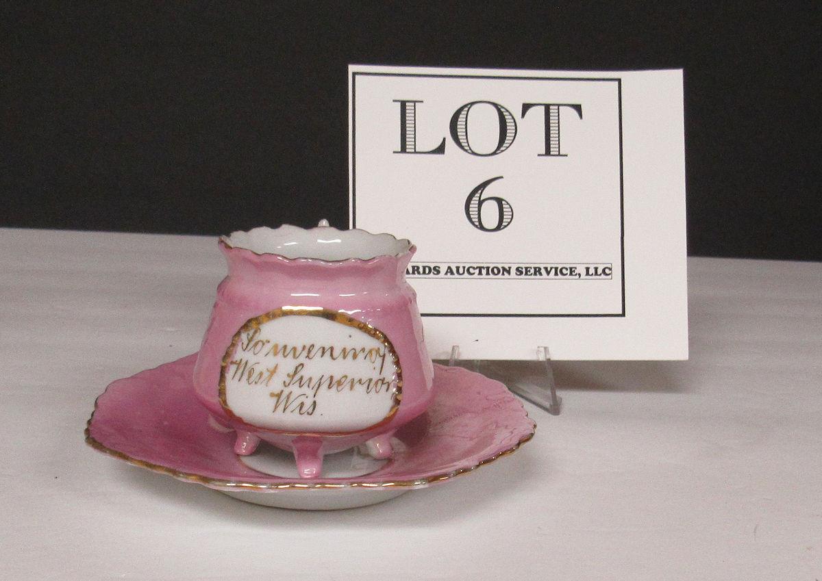 Antique Fancy Miniature Cup and Saucer Souvenir West Superior, WI