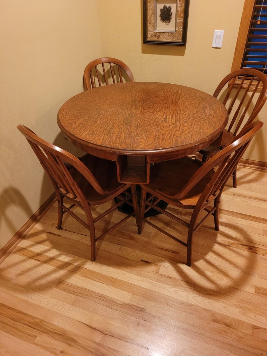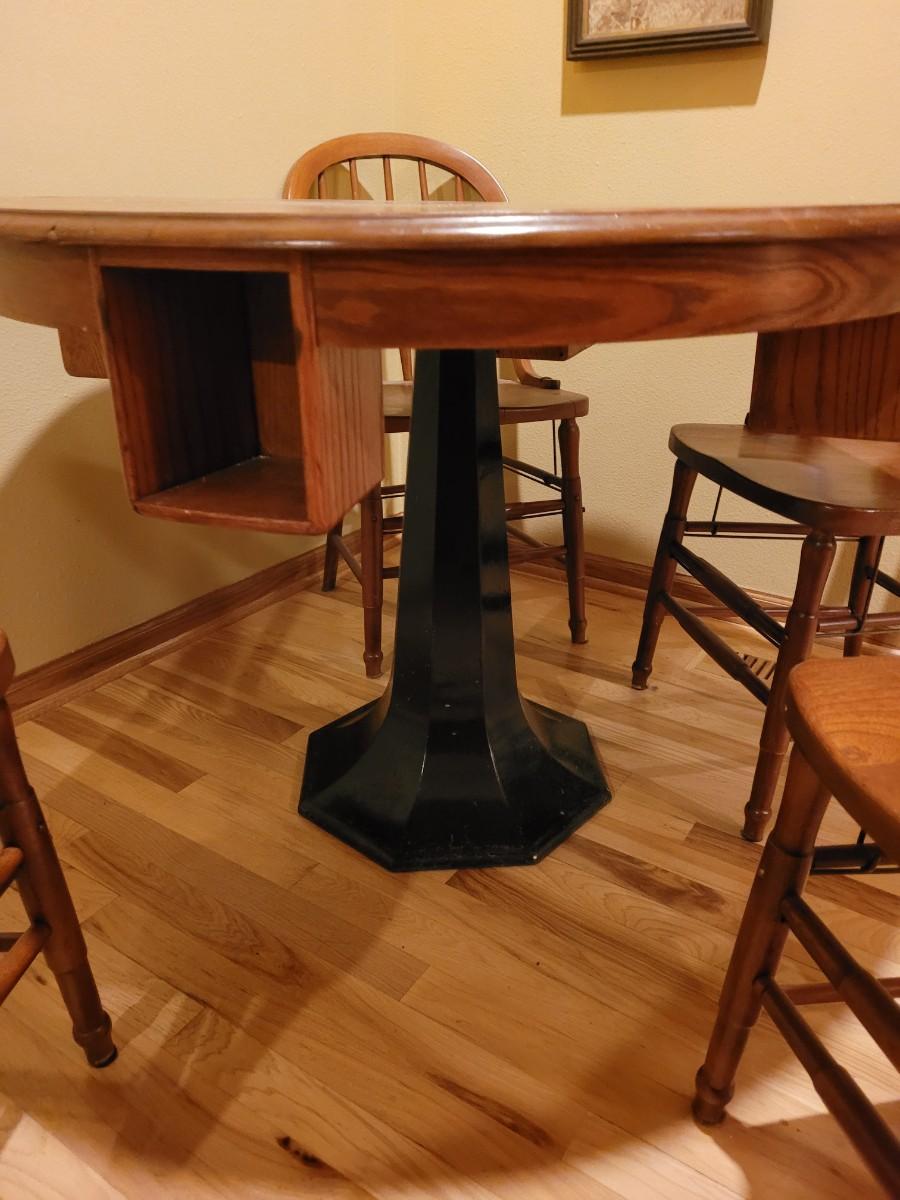 Antique Fauerbach Brewery Table with Metal Base and 4 chairs