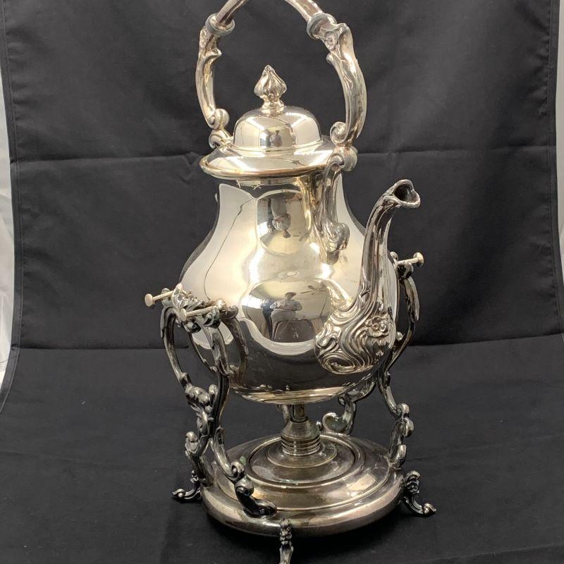 BEAUTIFUL FB ROGERS LEAF & ROSE 1883 SILVERPLATE TILT COFFEE KETTLE -