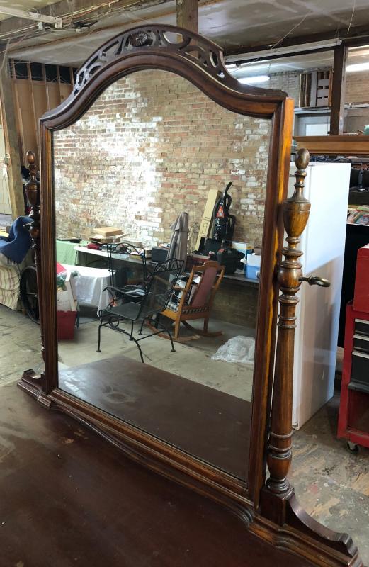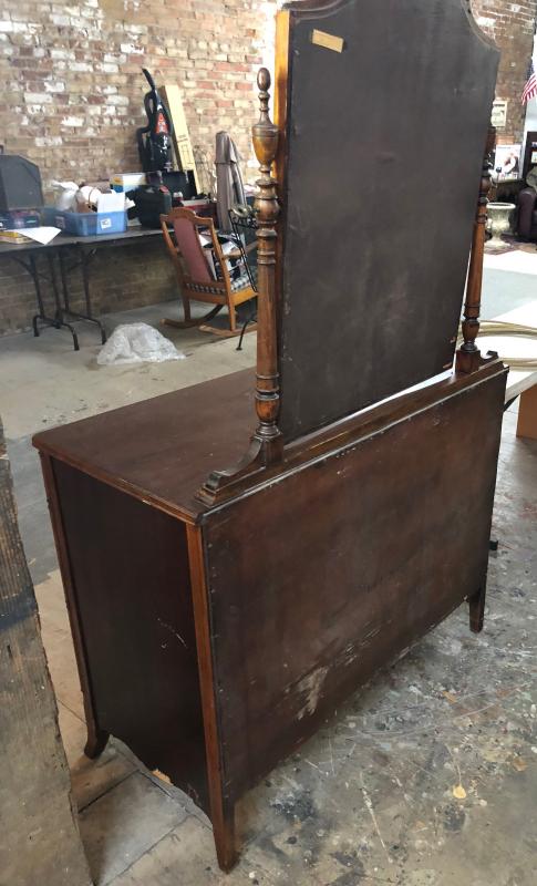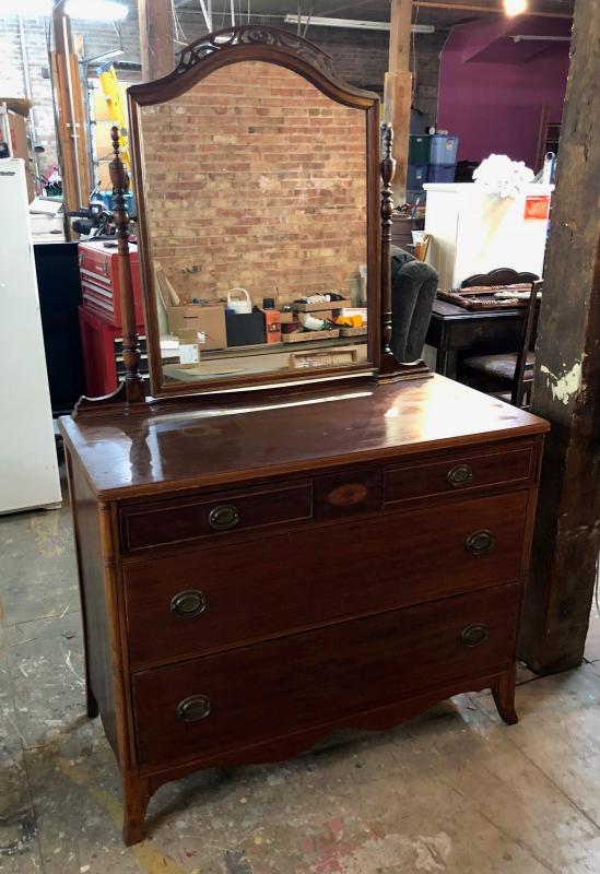 In the Federal style here is an antique chest of drawers with a mirror...approx 43 x 21 x 35"....