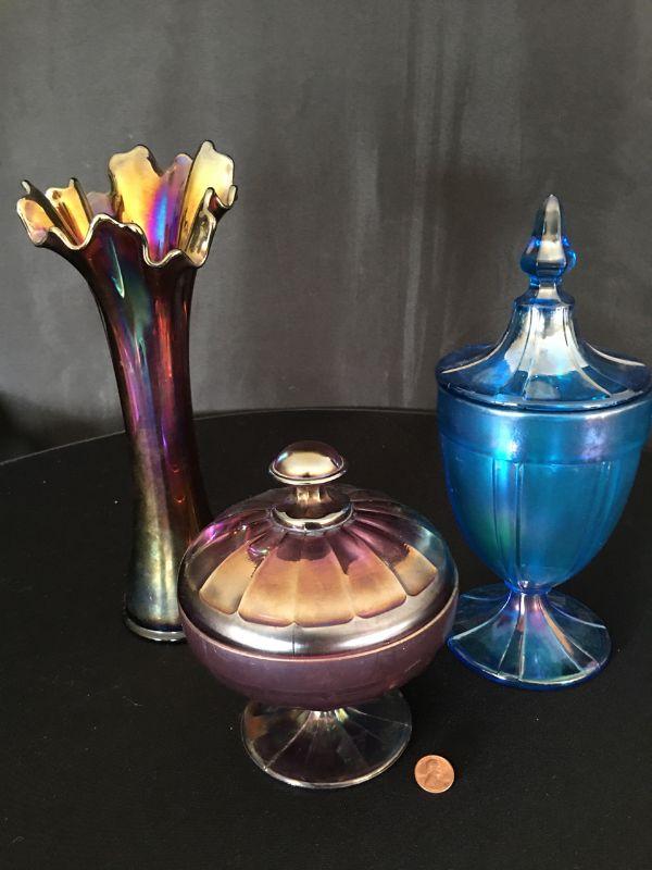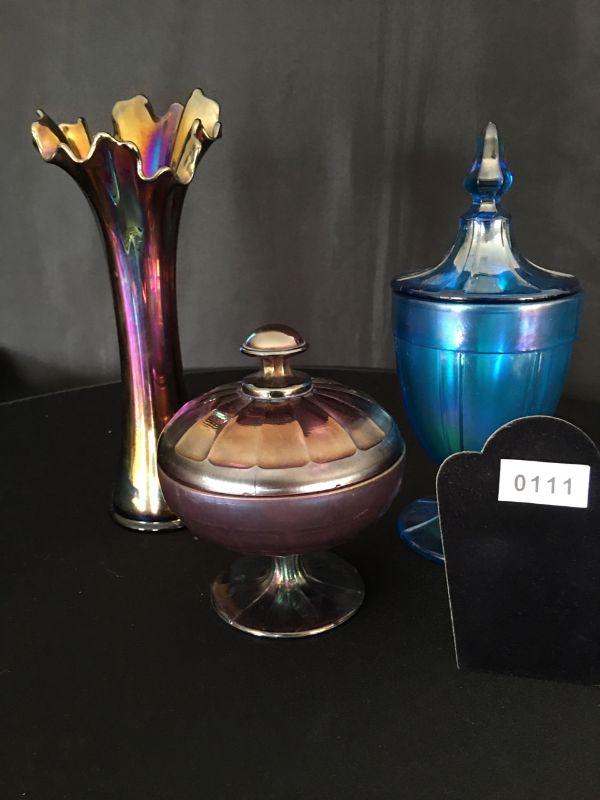 Antique Fenton Candy Dish & Art Glass Vase Lot of 3 Lot # 111j