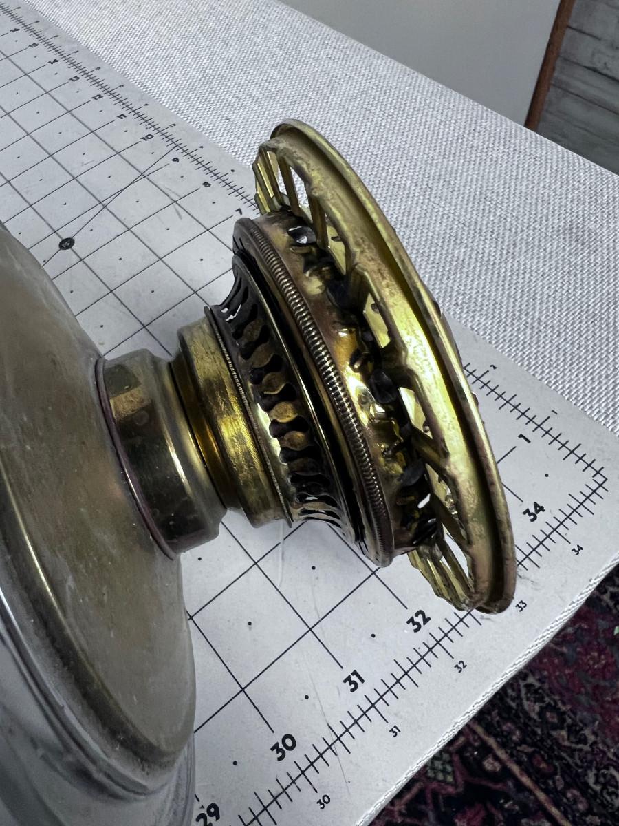 as-is appears that the wick knob is missing, no chimney or shade 15" tall