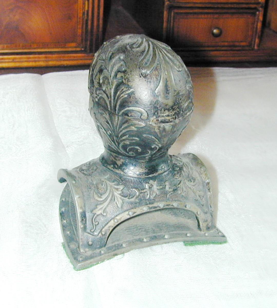 Antique Figural Cast Metal Inkwell Men's Bust - With French receipt - 5" tall