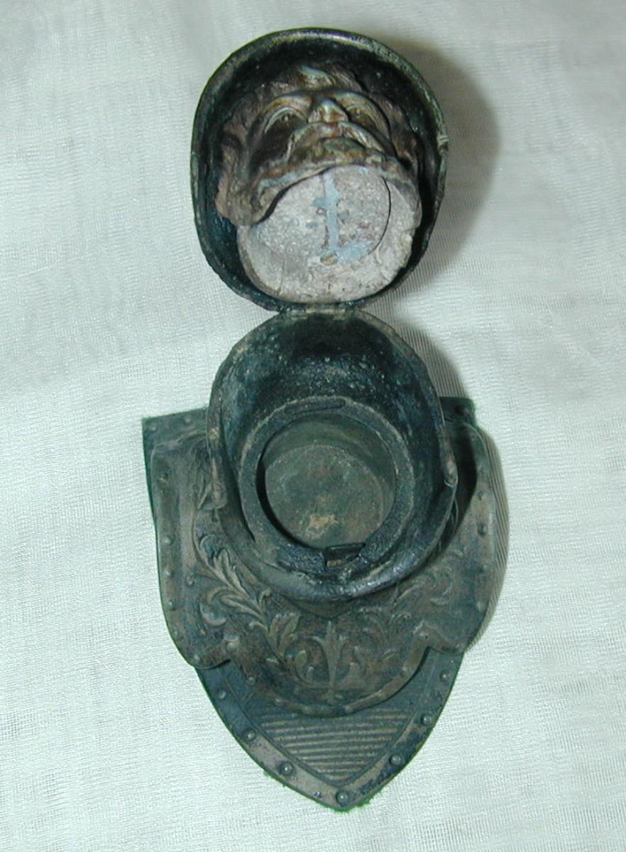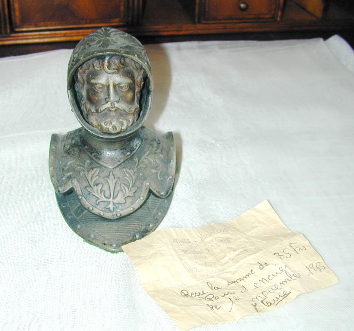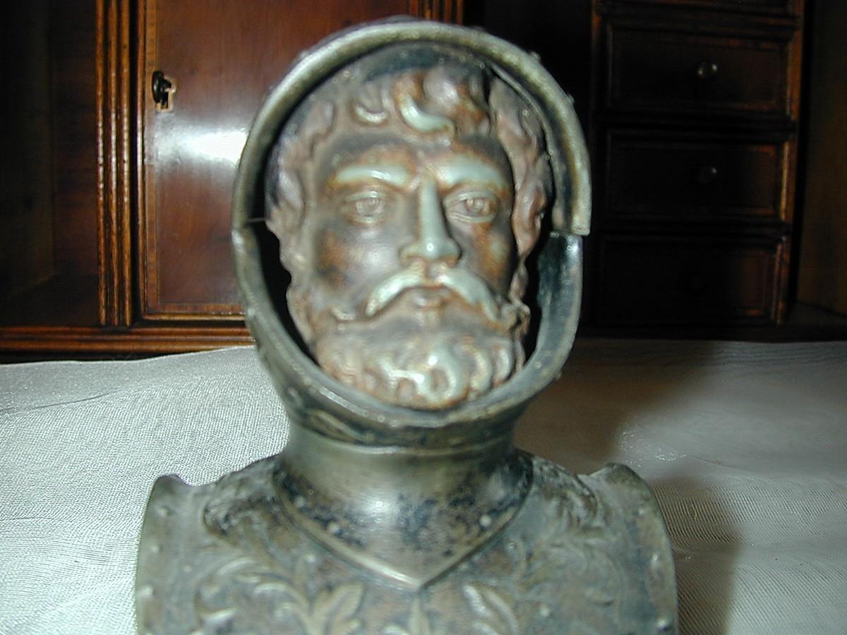 Antique Figural Cast Metal Inkwell Men's Bust - With French receipt