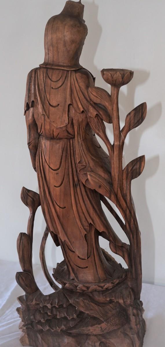 ANTIQUE FINE CHINESE WOOD CARVED STATUE  - BUDDHA QUAN YIN LADY OF COMPASSION 39"