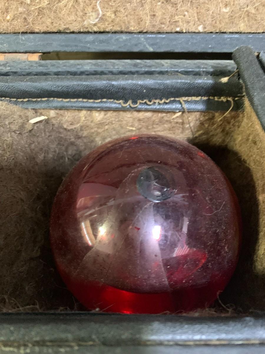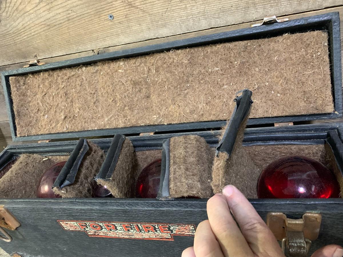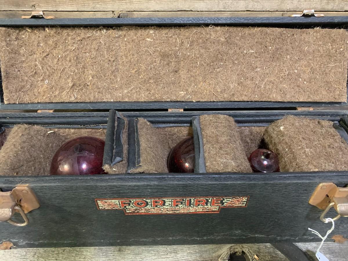 Antique Fire Chemical Red Glass Extinguisher Balls, Complete in Case