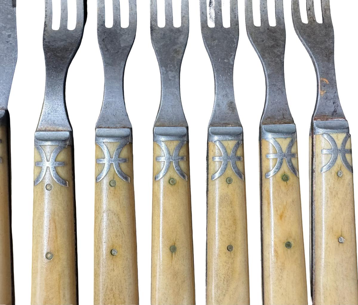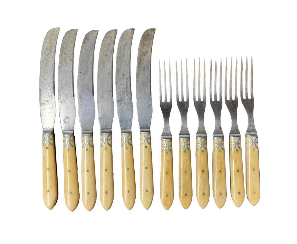Knives and forks with ivory handles. Total of twelve pieces. Measurement of knives: 9.5”L. **WINNING BIDDER MUST PRESENT VALID FLORIDA ID AT LOCAL PICKUP.** [JL]