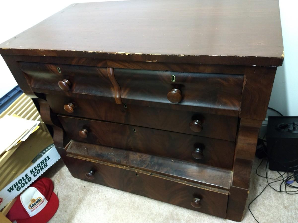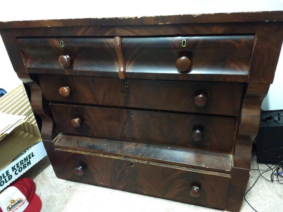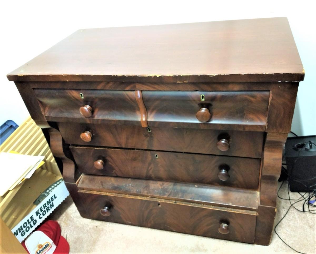 Antique Flame Mahogany Empire Style Two over Three Dresser downstairs item