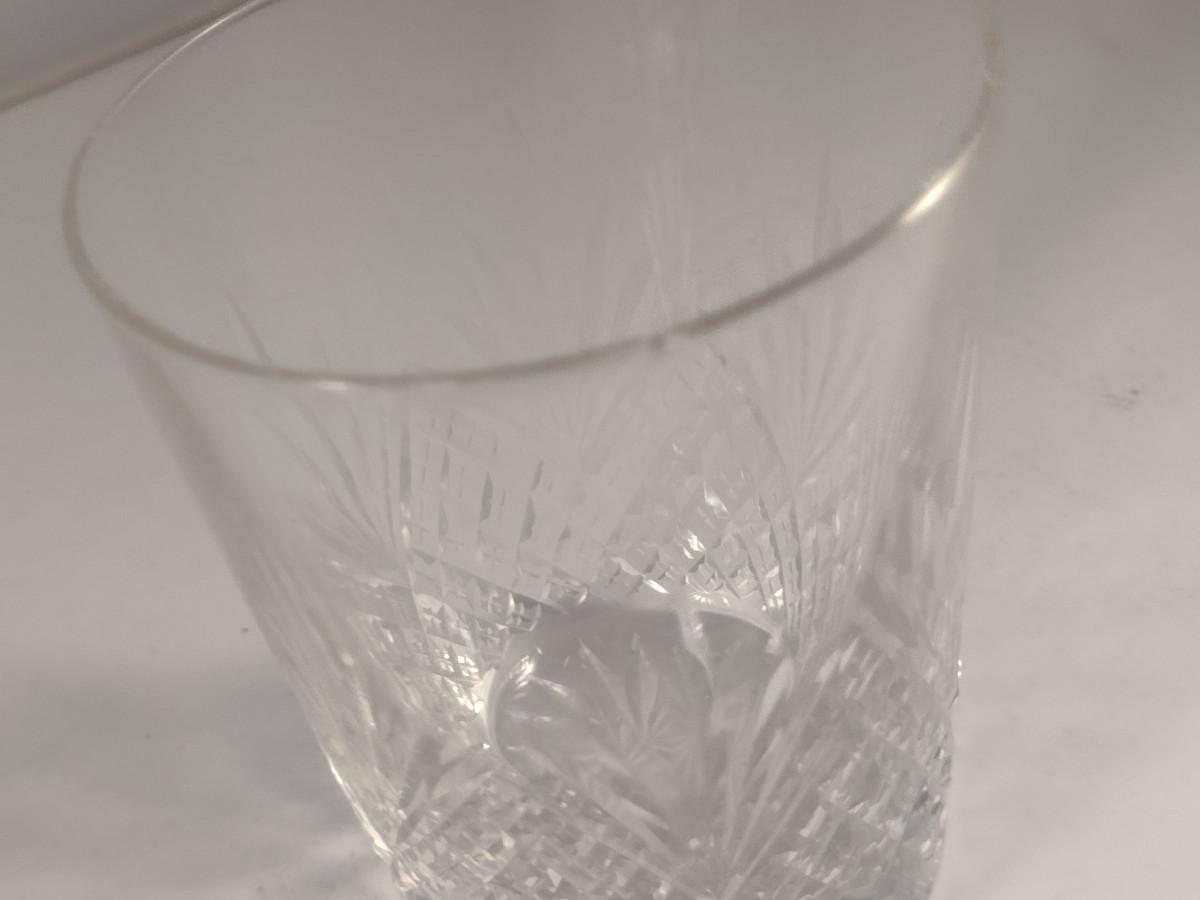 Antique Flint Glass Tumblers- Pineapple and Diamond Design- Three Pieces- Approx 3 7/8" Tall. Items have some 'chigger bite' chipping- please see all pictures.