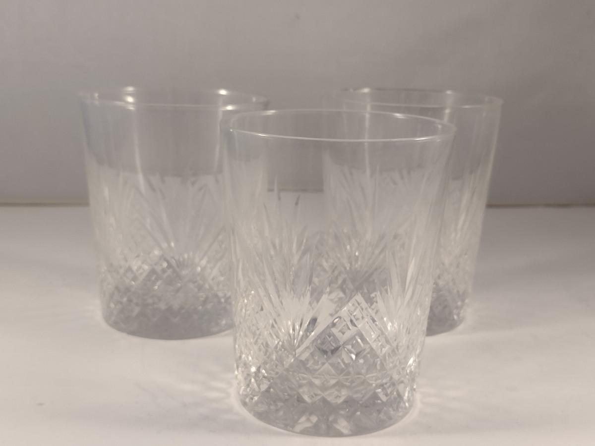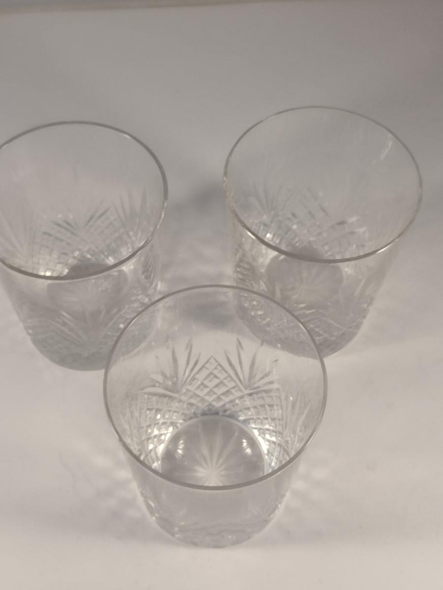 Antique Flint Glass Tumblers- Pineapple and Diamond Design- Three Pieces- Approx 3 7/8" Tall