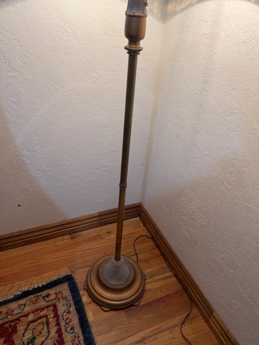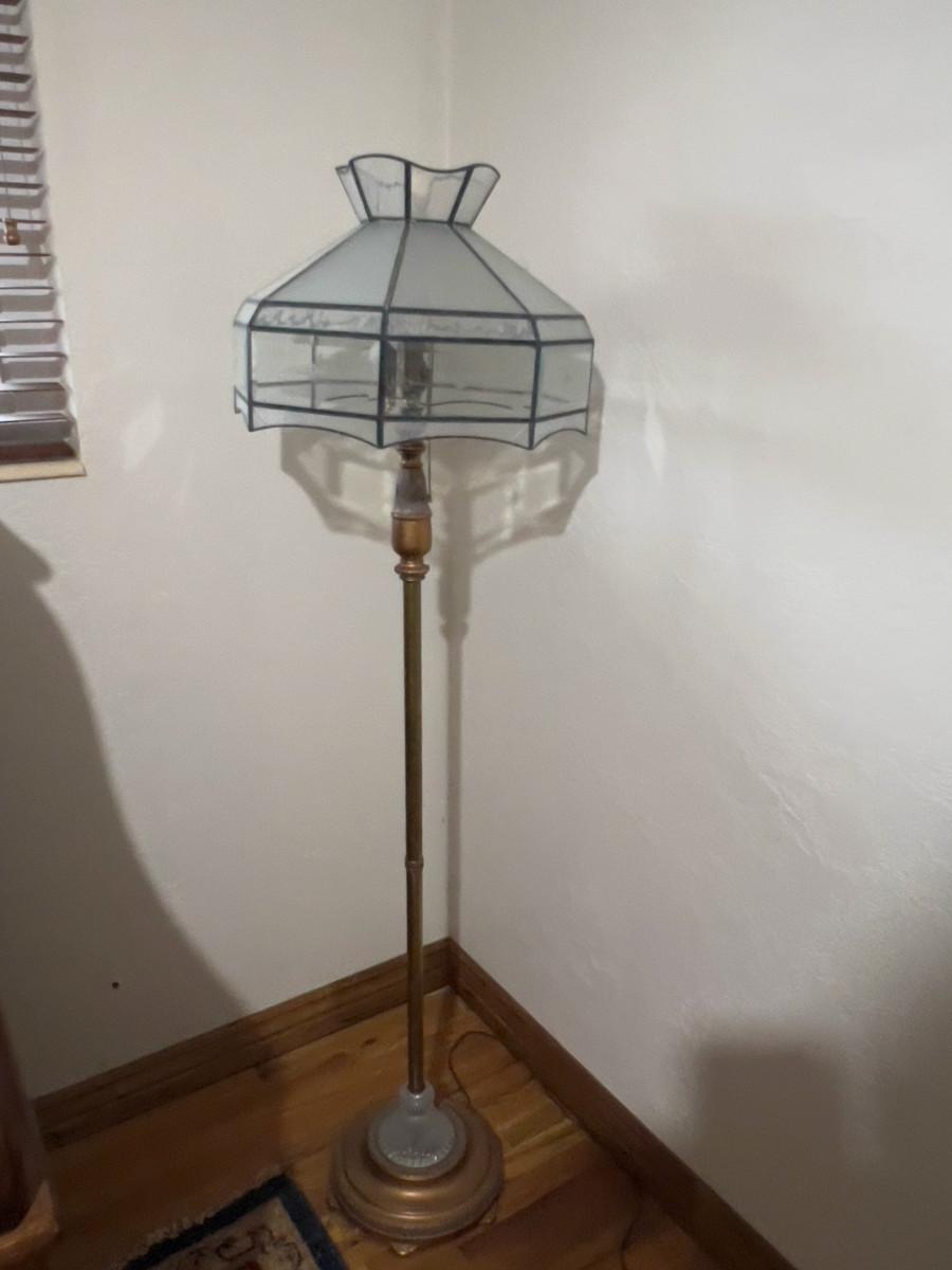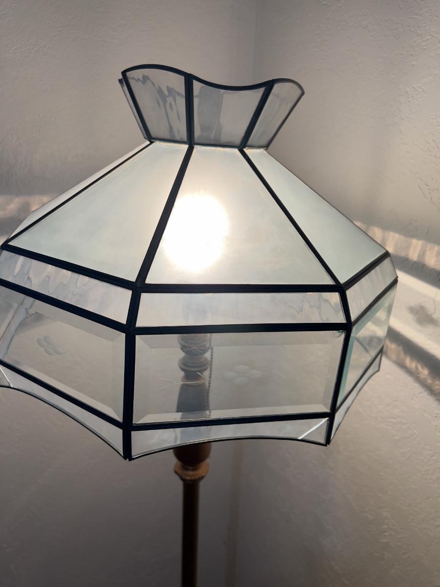 Antique Floor Lamp with Frosted Lead Glass Shade