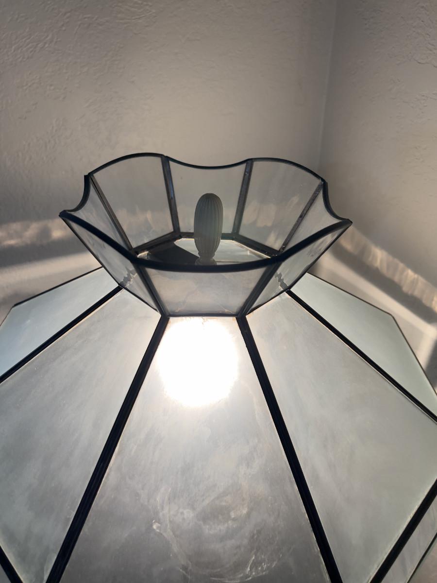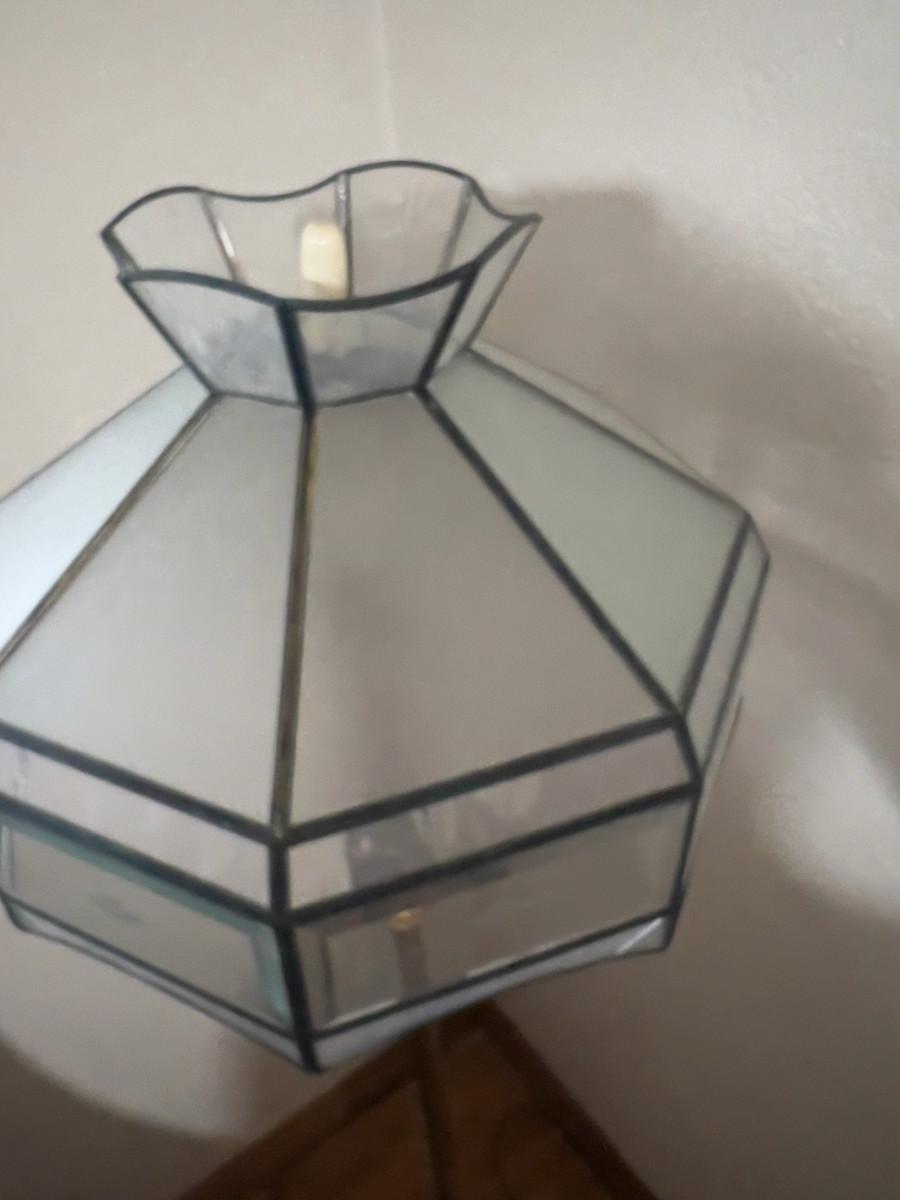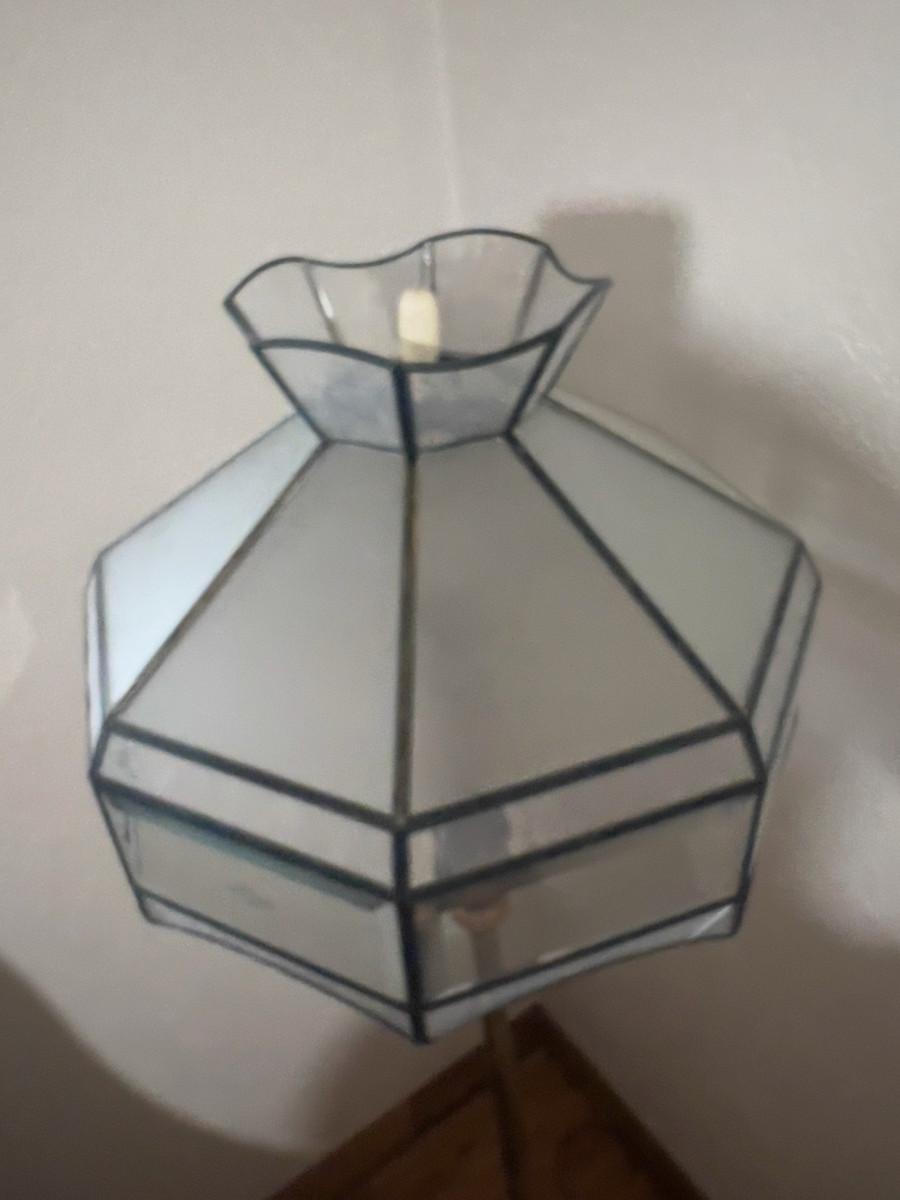 Antique Floor Lamp with Frosted Lead Glass Shade