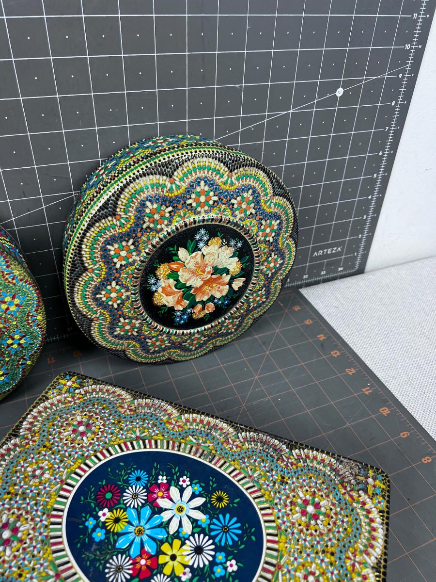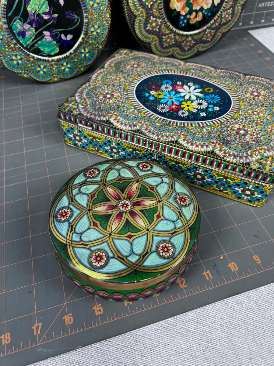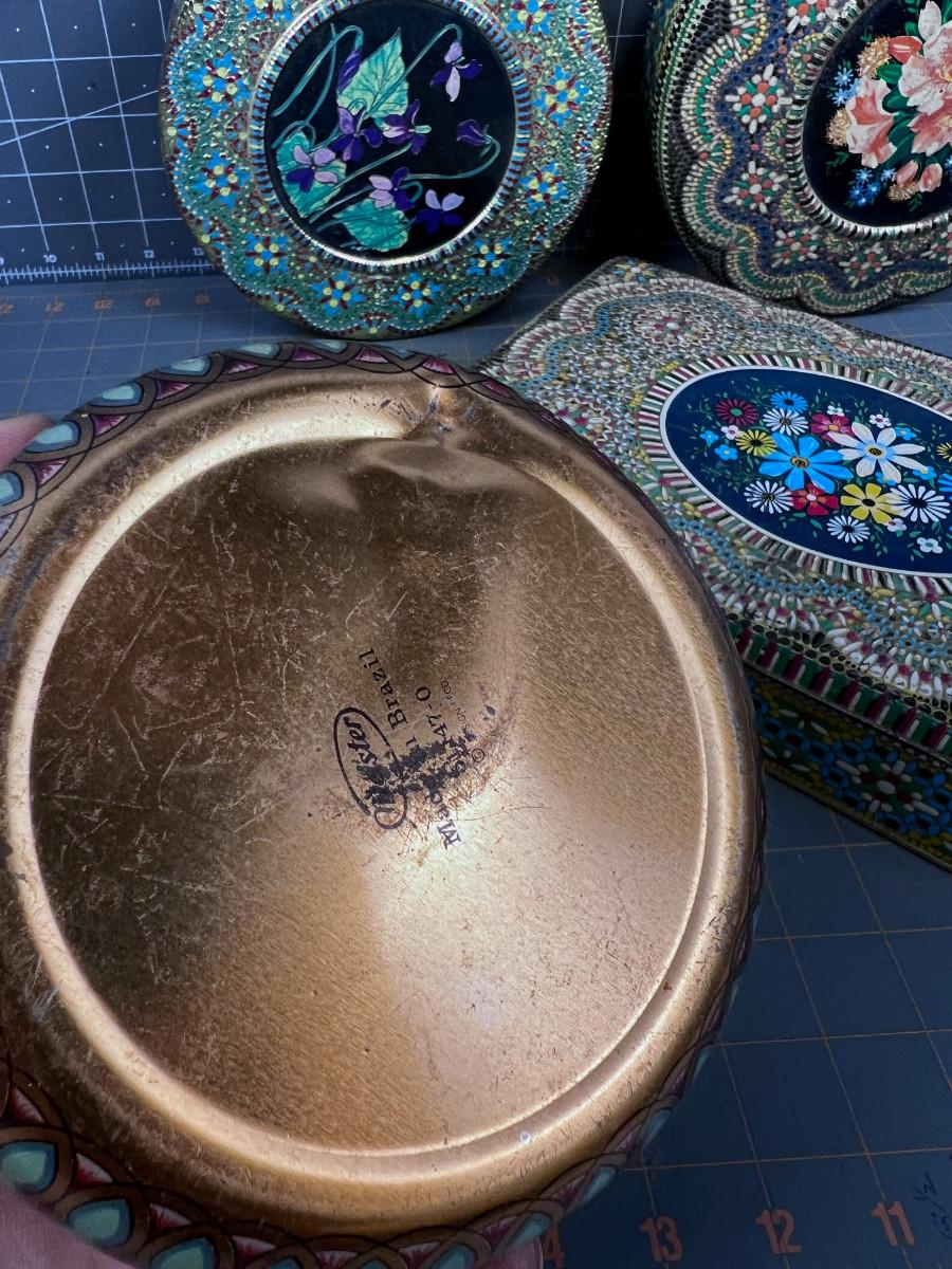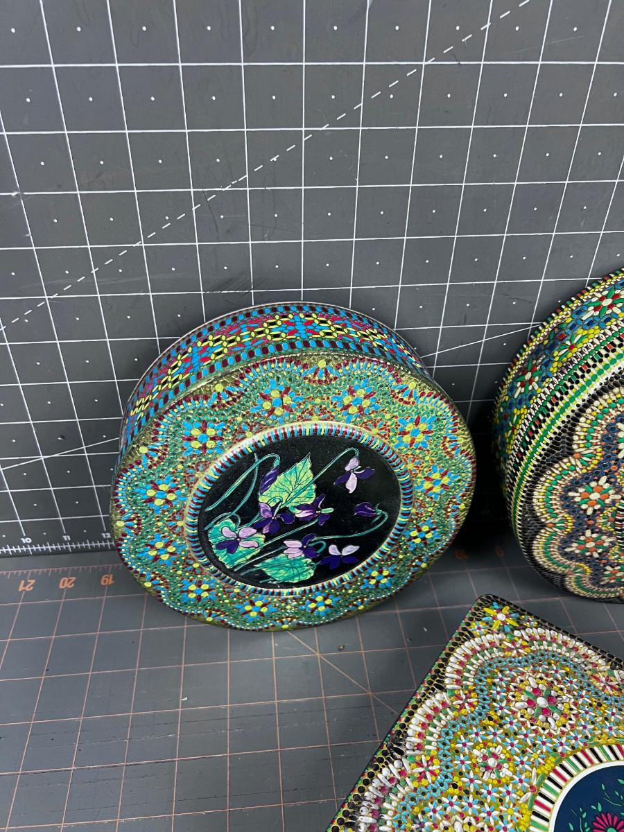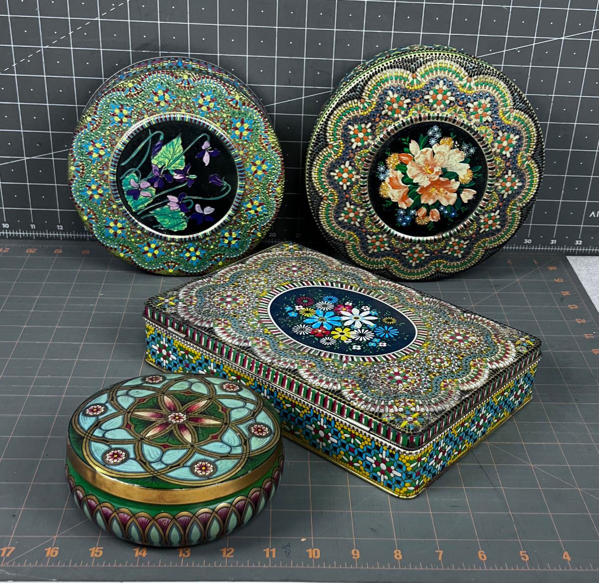Antique Floral Candy Biscuit Tins, Mosaic Like