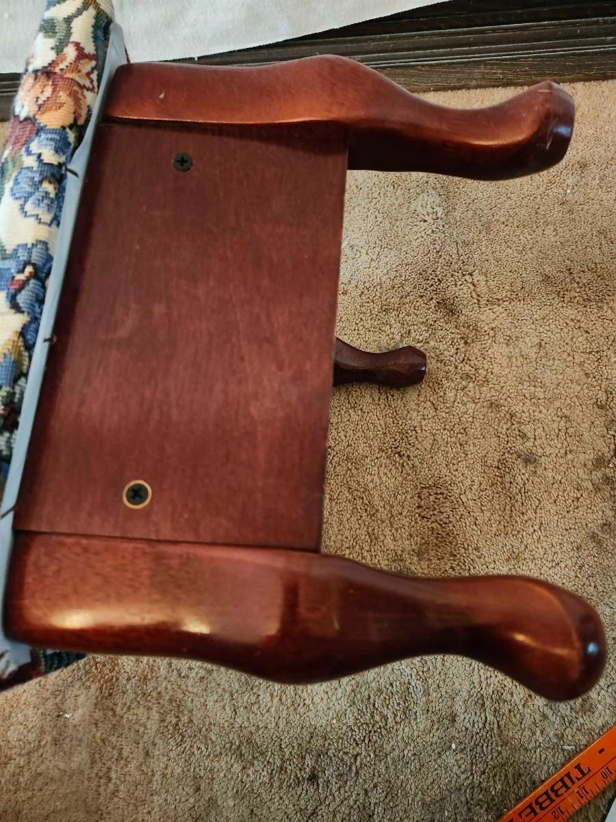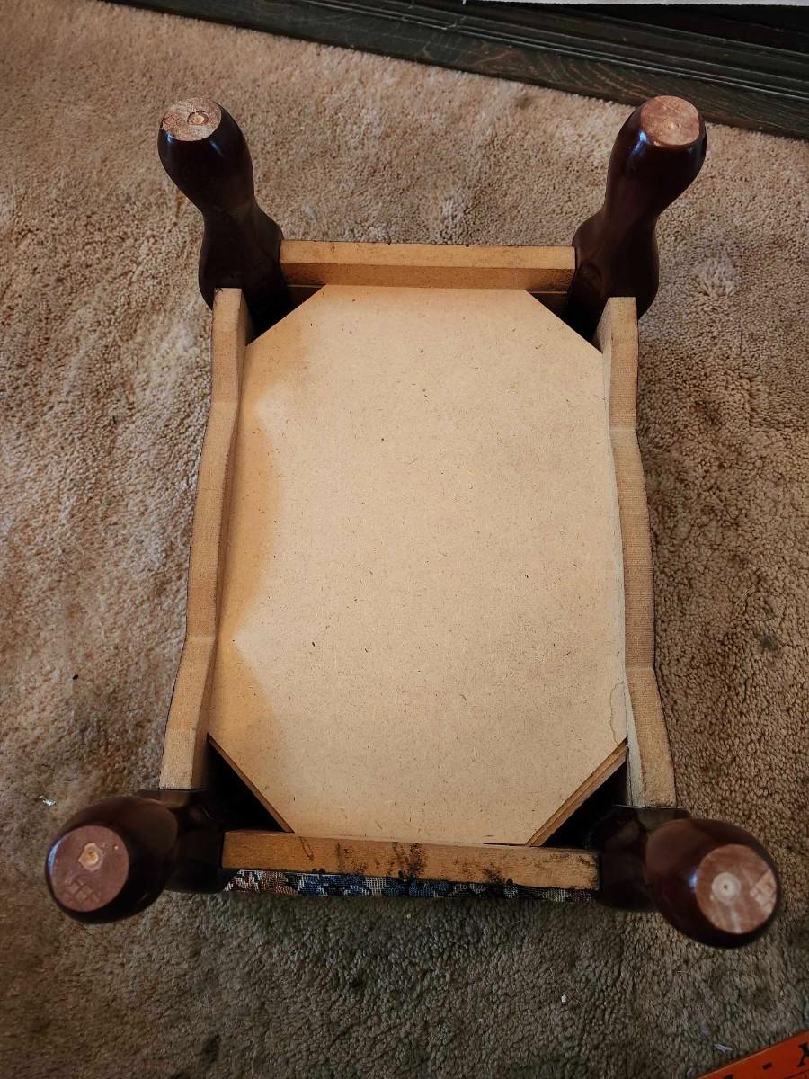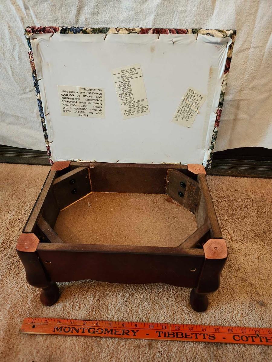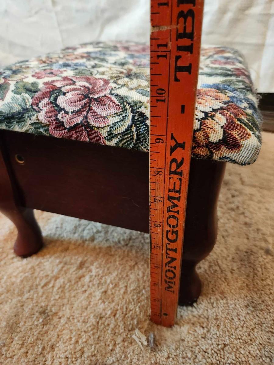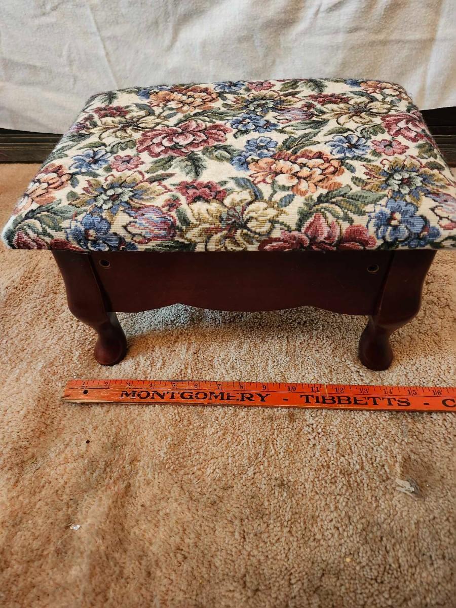 Antique Floral Step Stool Wooden Tapestry Footstool, Storage, Queen Anne Legs