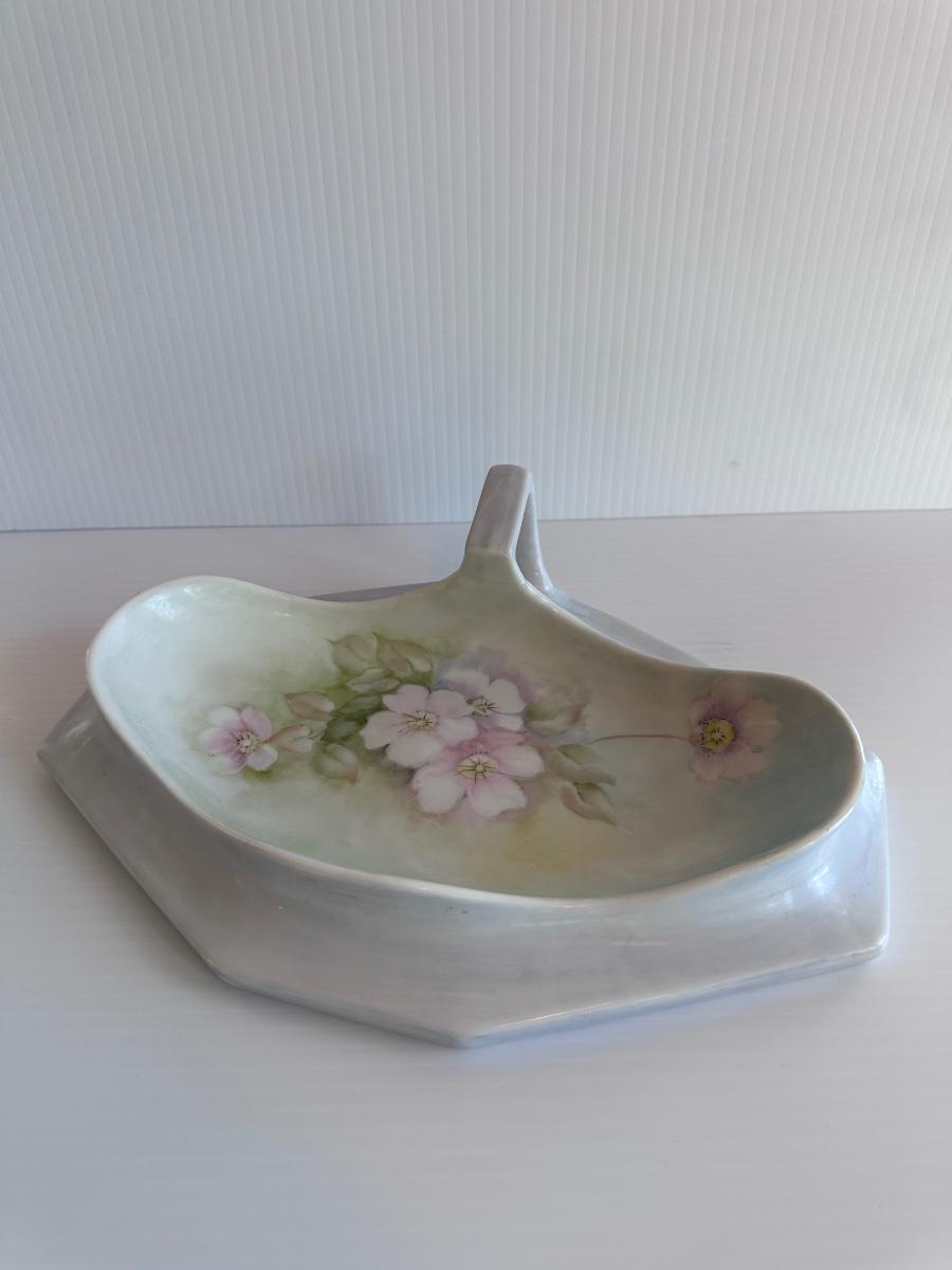 Antique ceramic floral vanity tray dish.