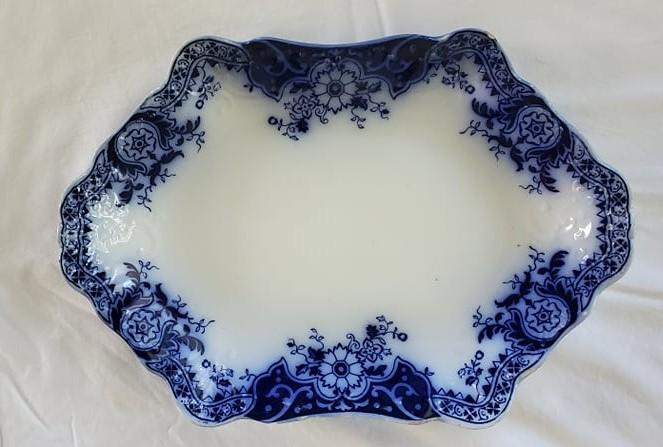 ANTIQUE FLOW BLUE BROOKLYN ROYAL SEMI PORCELAIN OVAL SERVER