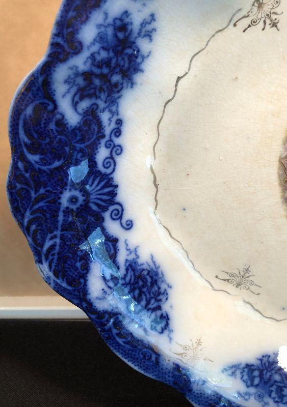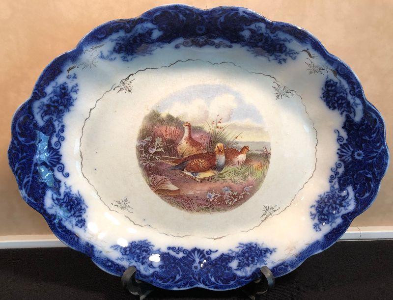 Antique platter 13" long has a hairline crack not visib;e, buy it as a wall hanger. C.1890's