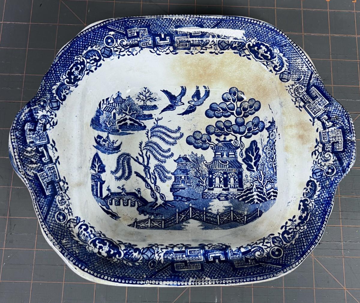 Antique Flow Blue Serving Bowl by WHITE BLOCK England