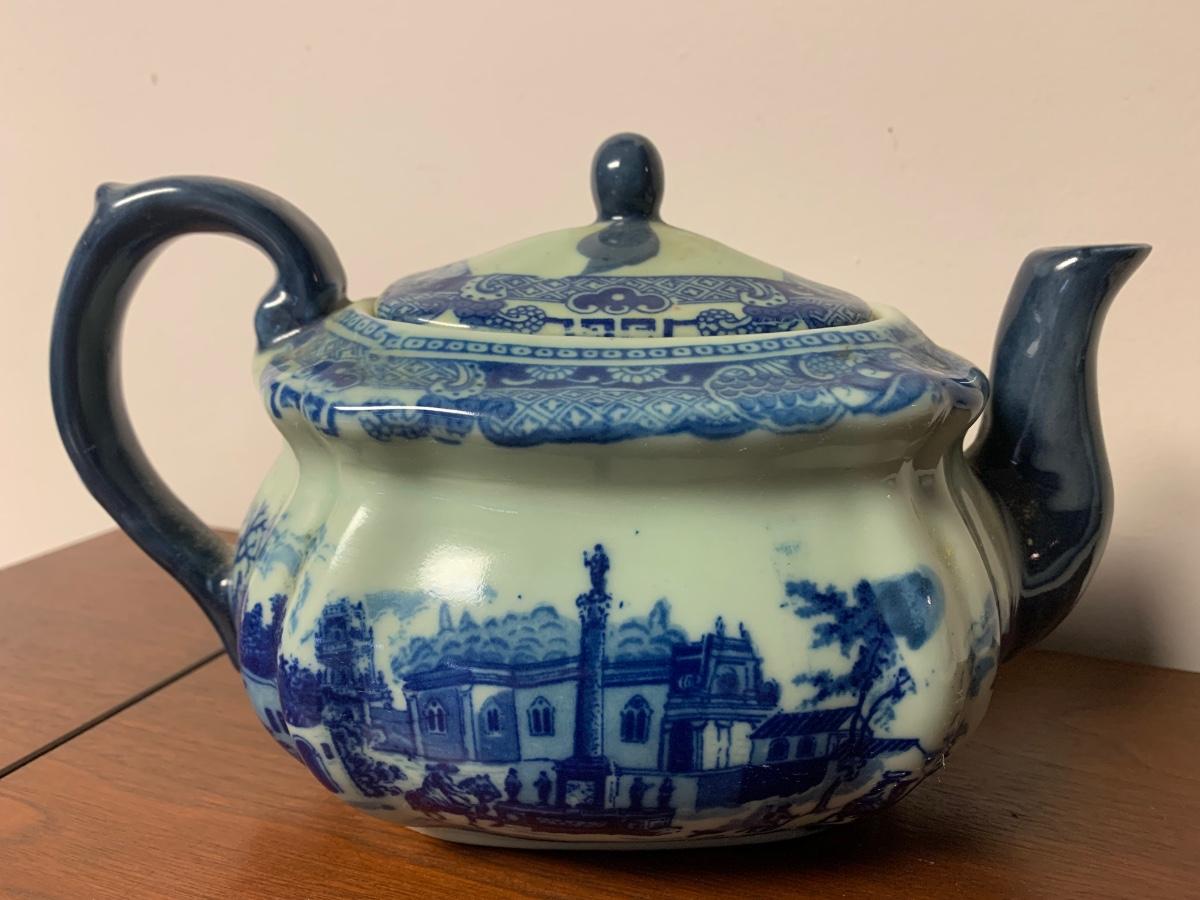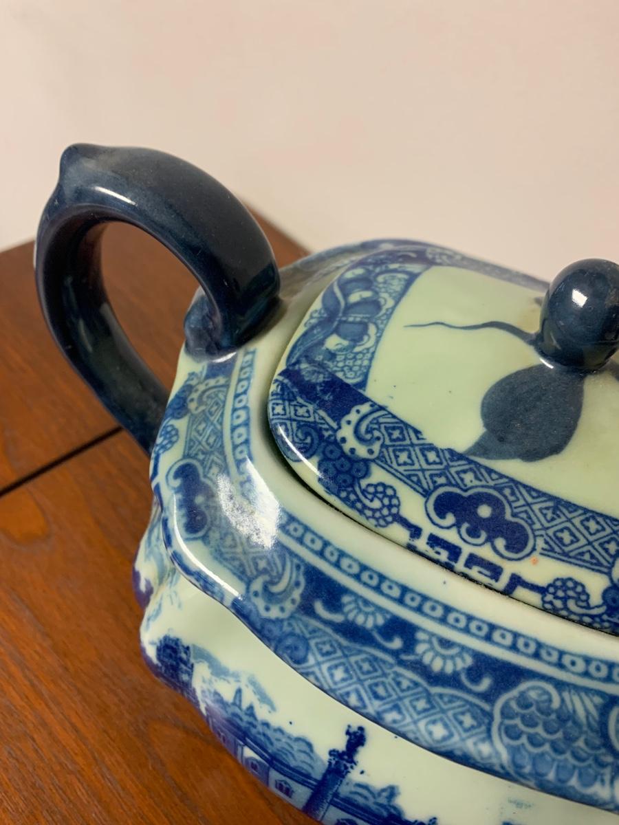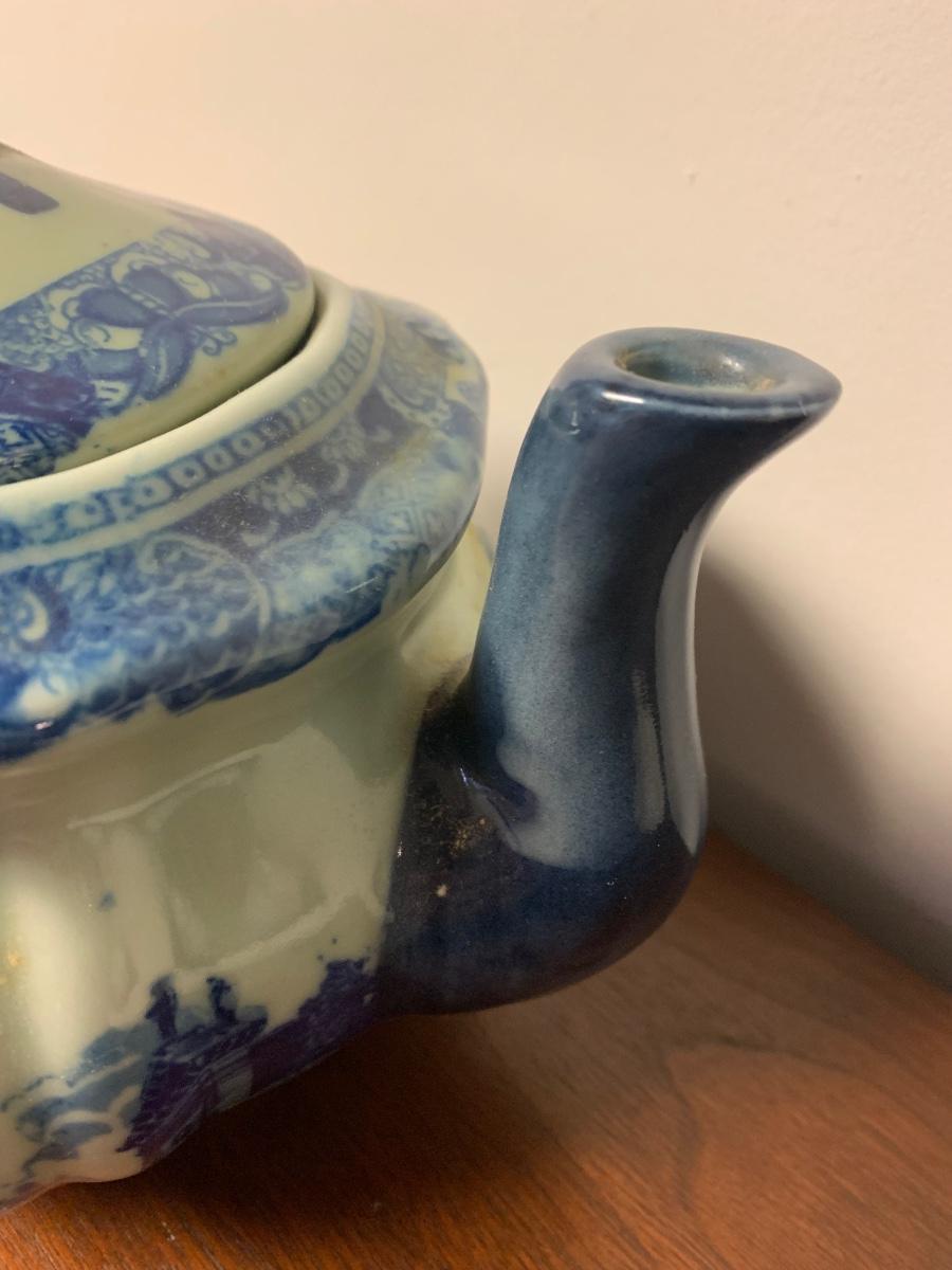 Antique Flow Blue Victoria Ware Large Teapot