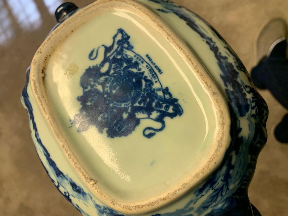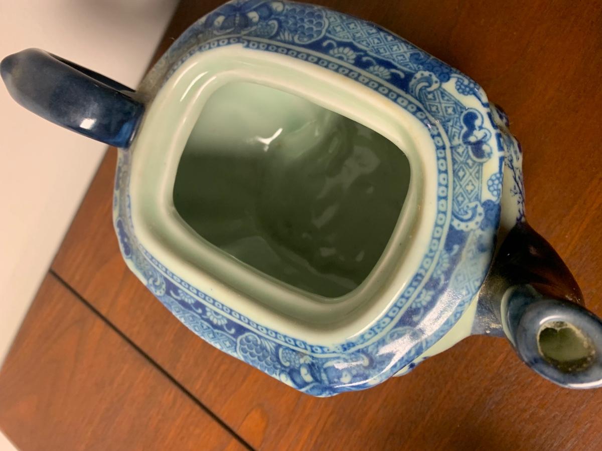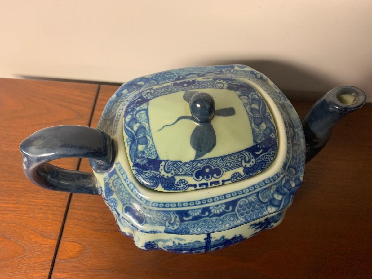 Antique Flow Blue Victoria Ware Large Teapot