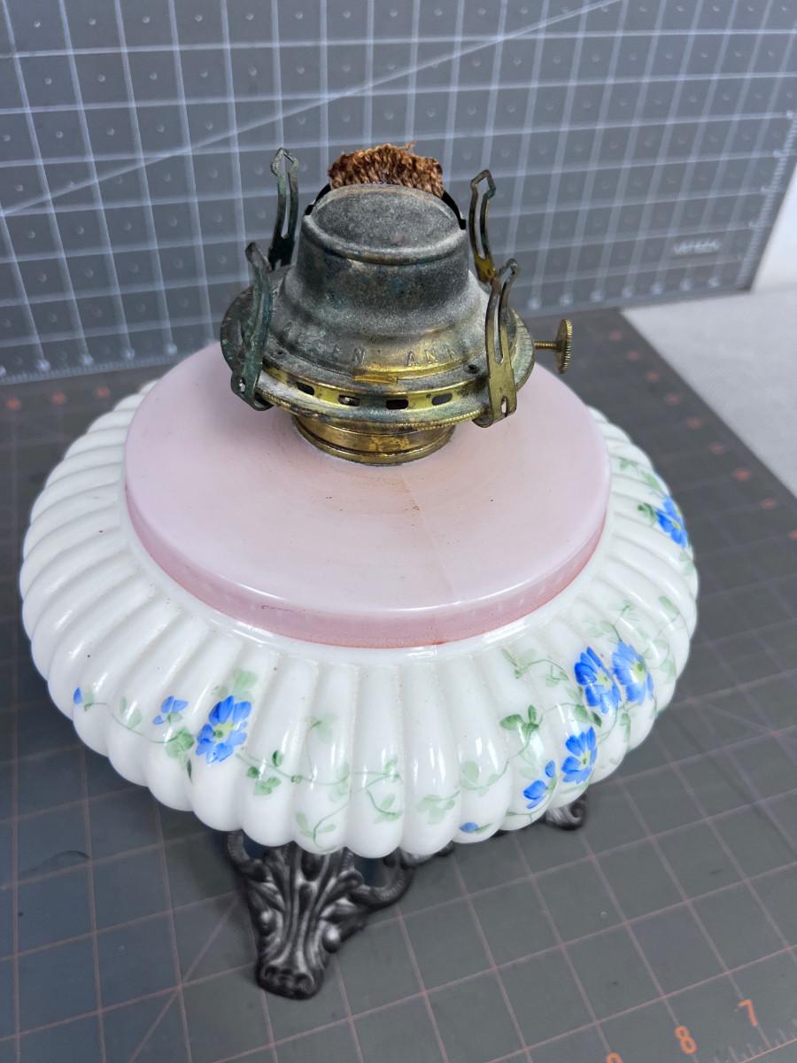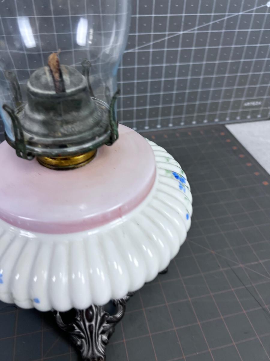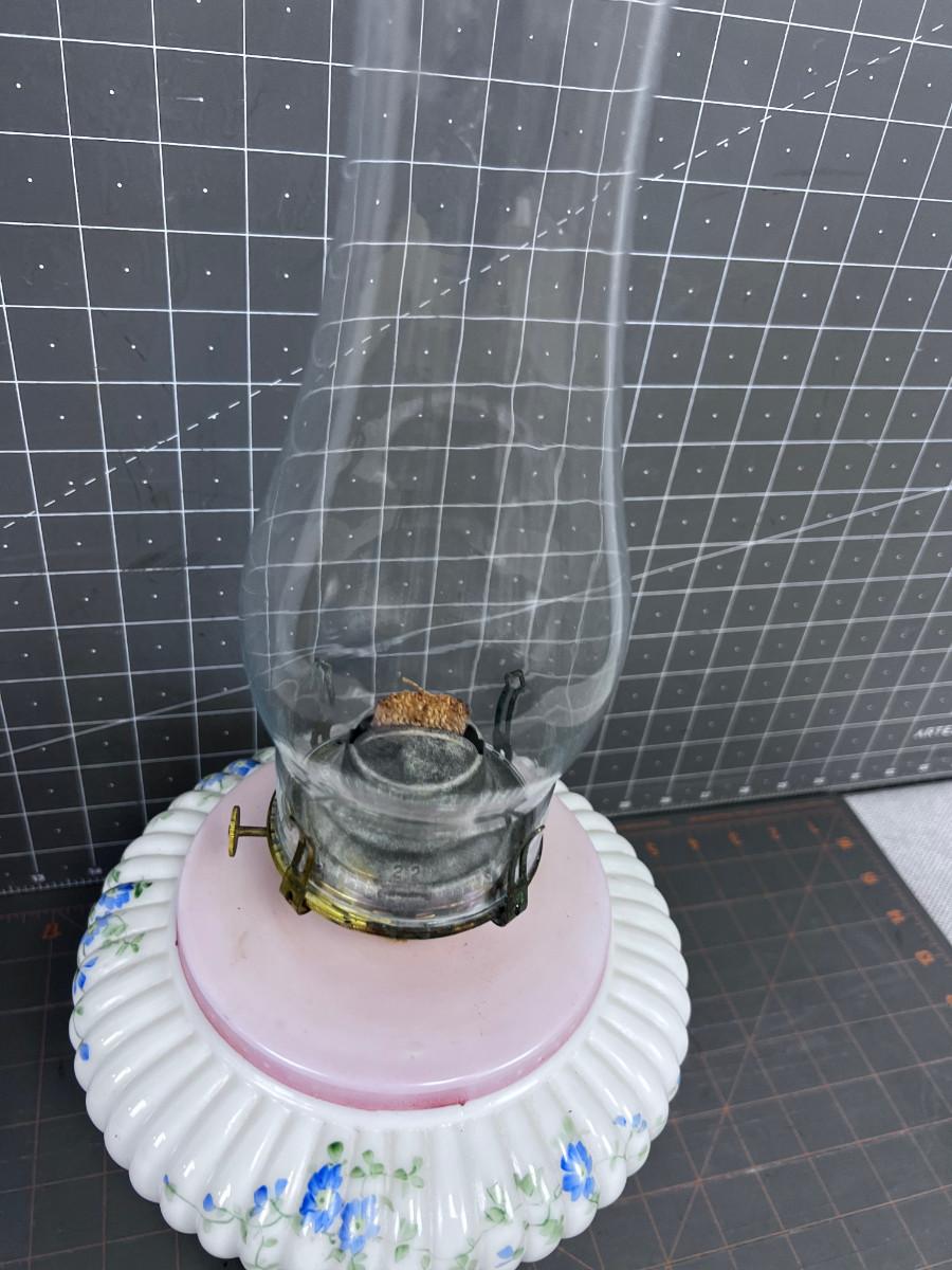 Antique Fluted Glass Kerosene Lantern Lamp White and Pink