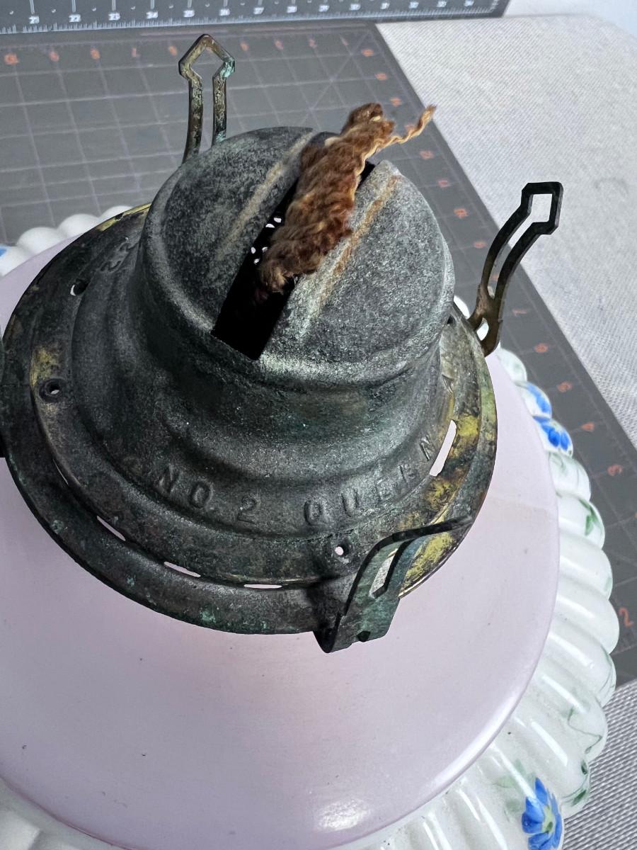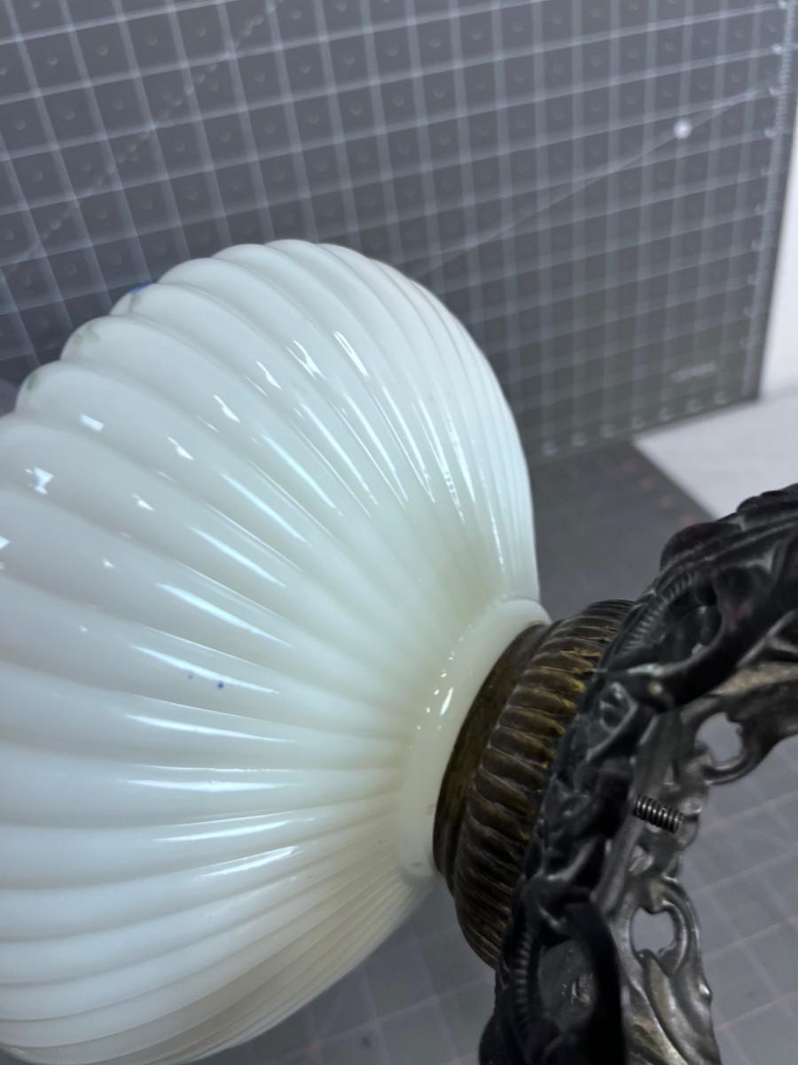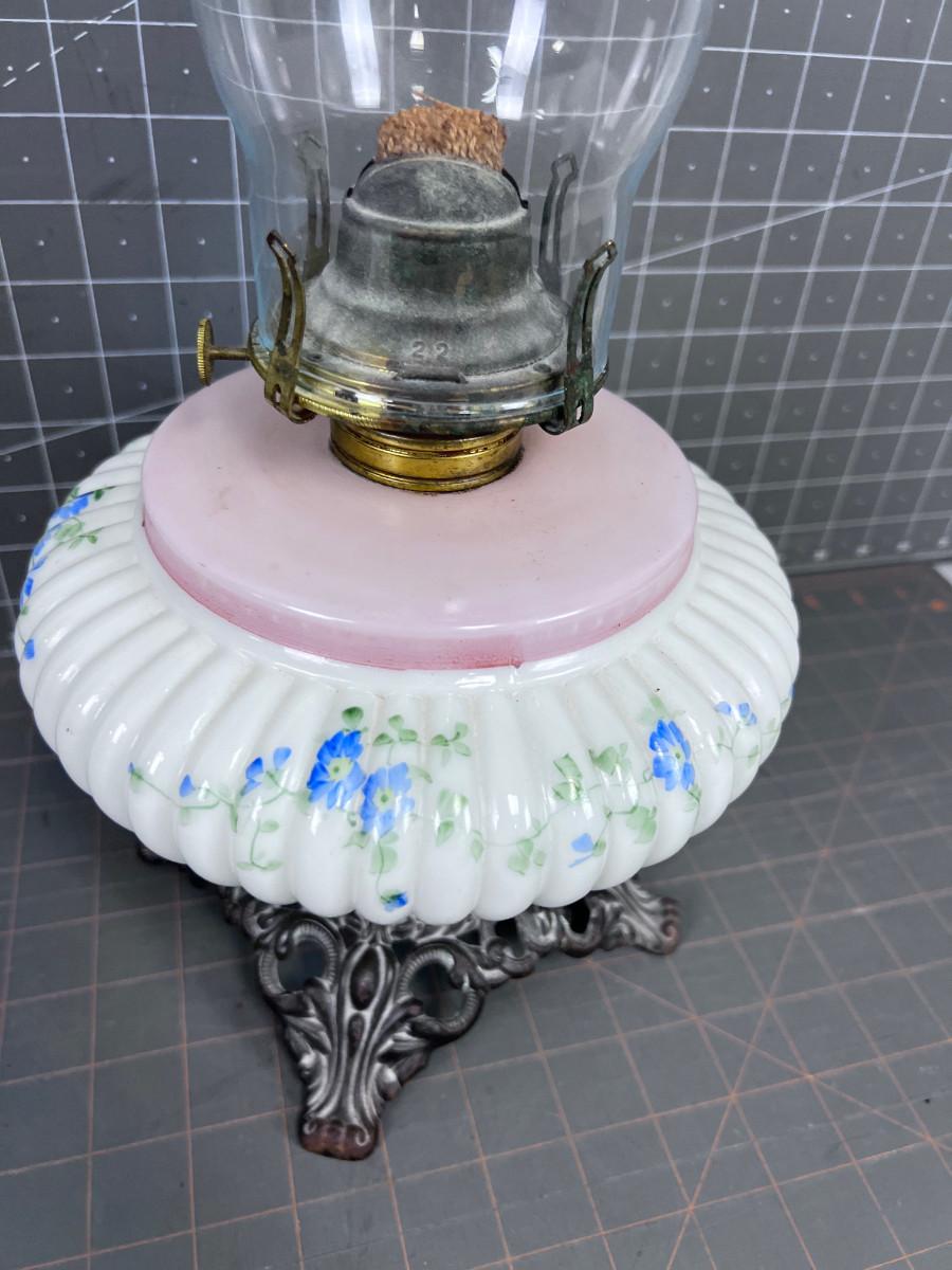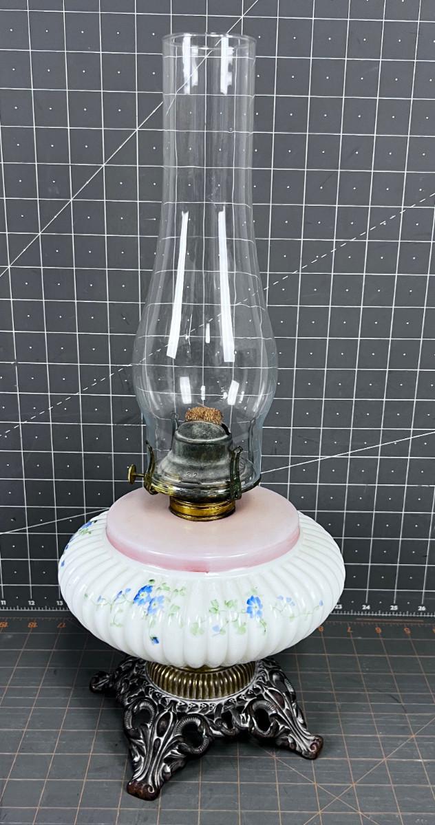 Antique Fluted Glass Kerosene Lantern Lamp White and Pink