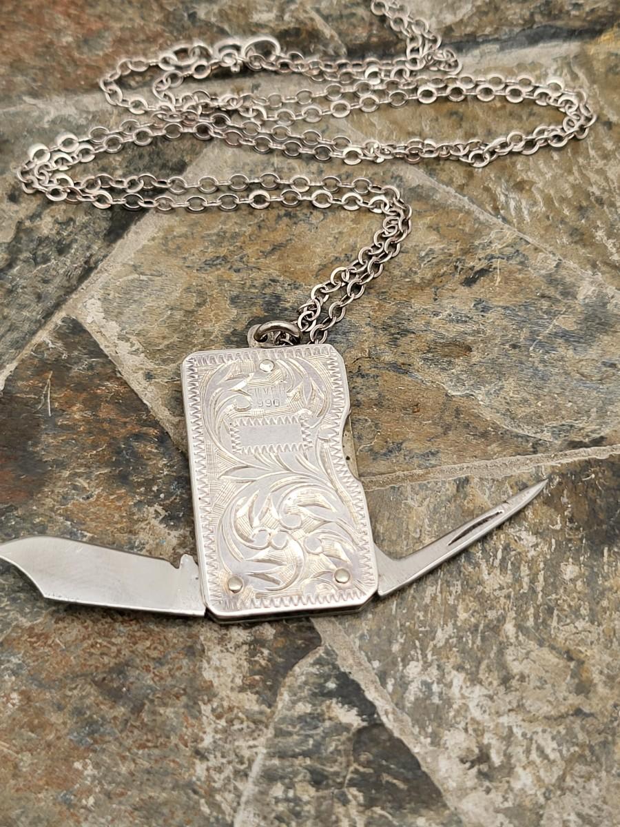 Antique Folding Pocket Knife Pendant 990 Silver 13.2gr
