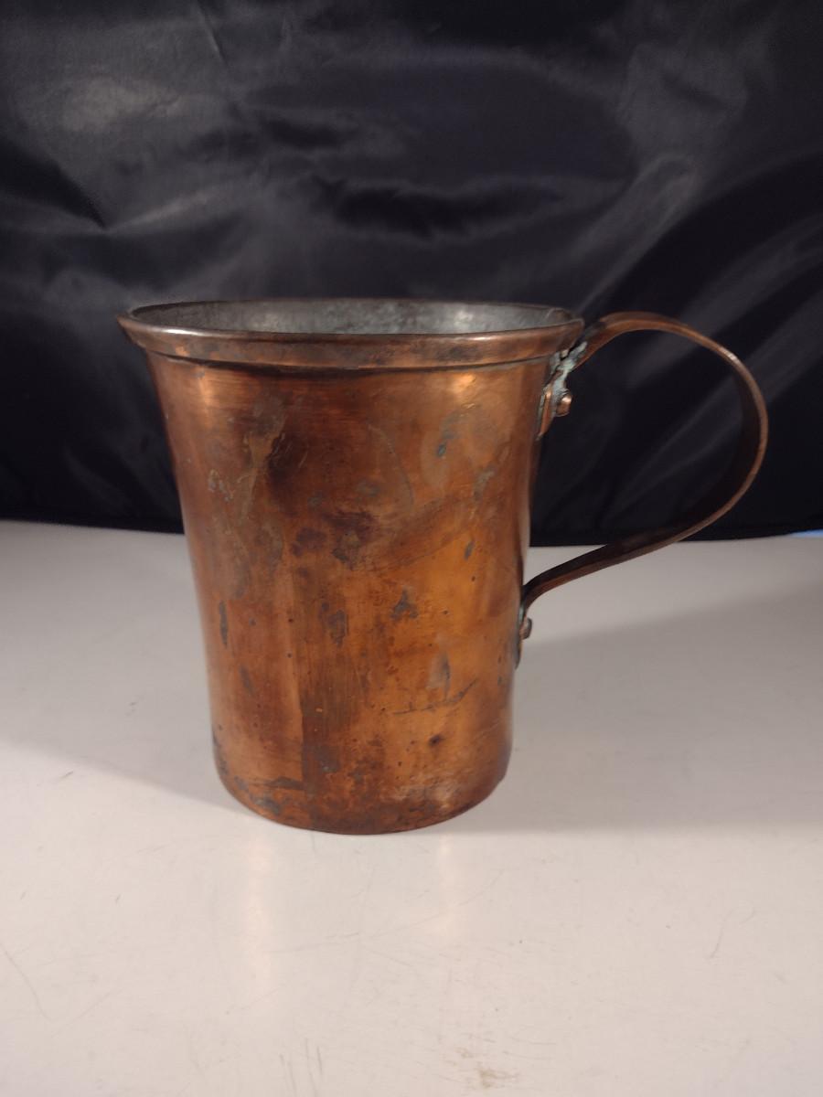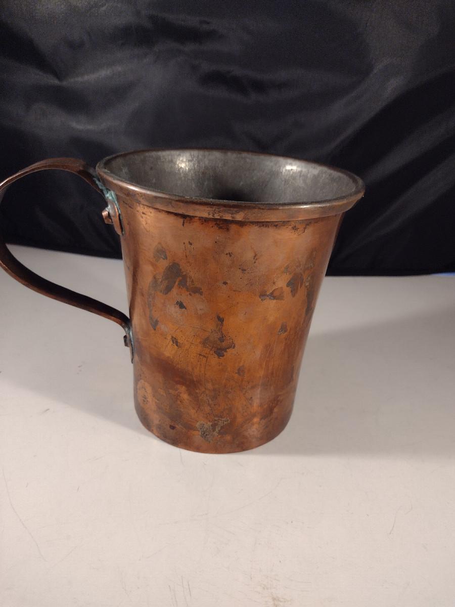 Antique Folk Art Handled Copper Mug/Pitcher- Approx 5 3/4" Tall