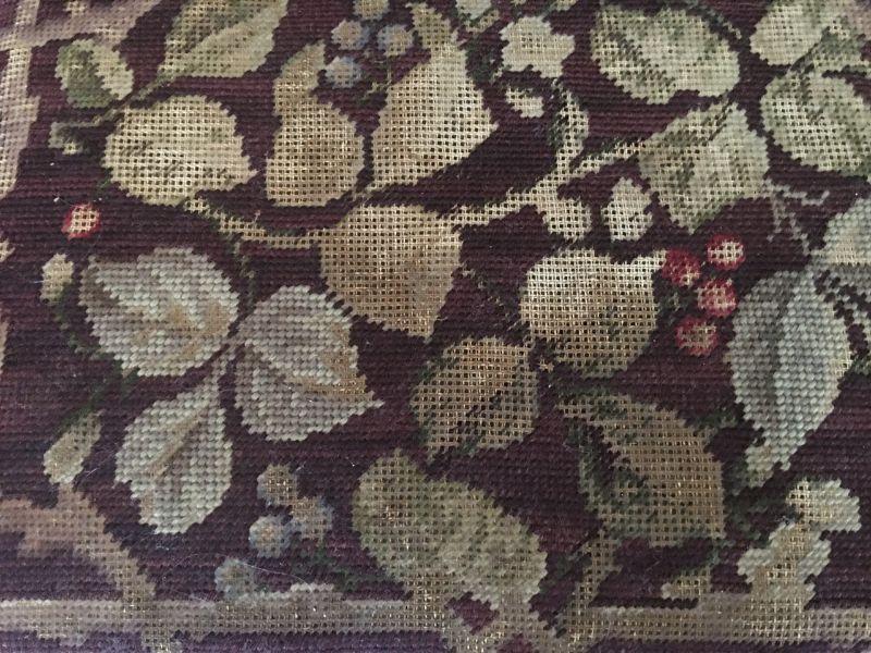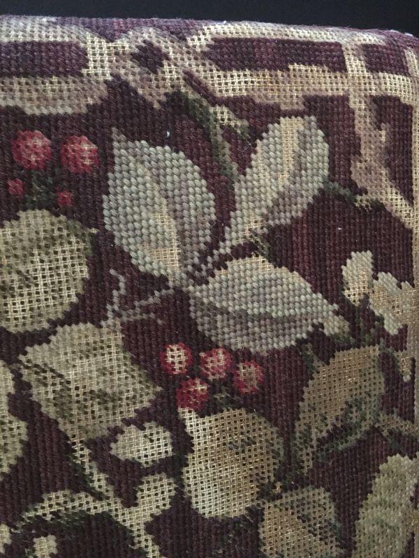 Antique foot stool with lovely needlepoint cover. #415