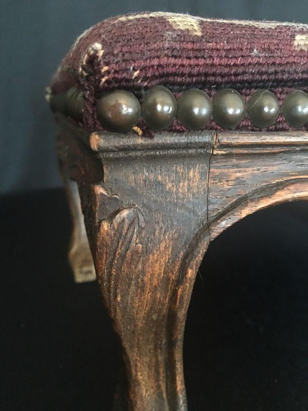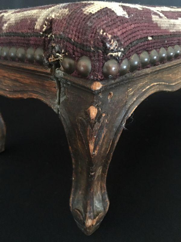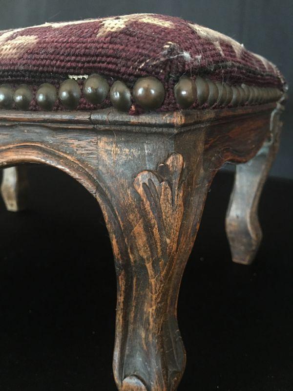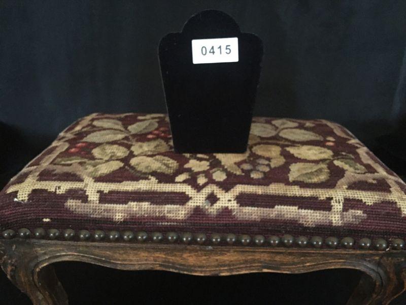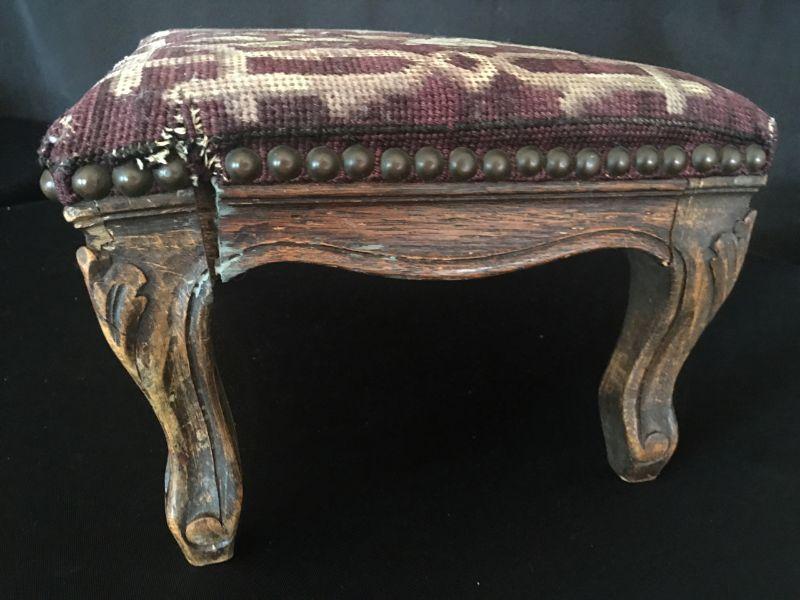 Small Antique foot stool with lovely needlepoint cover. #415