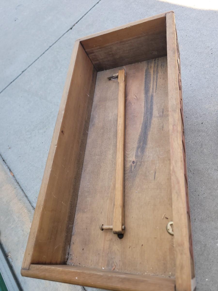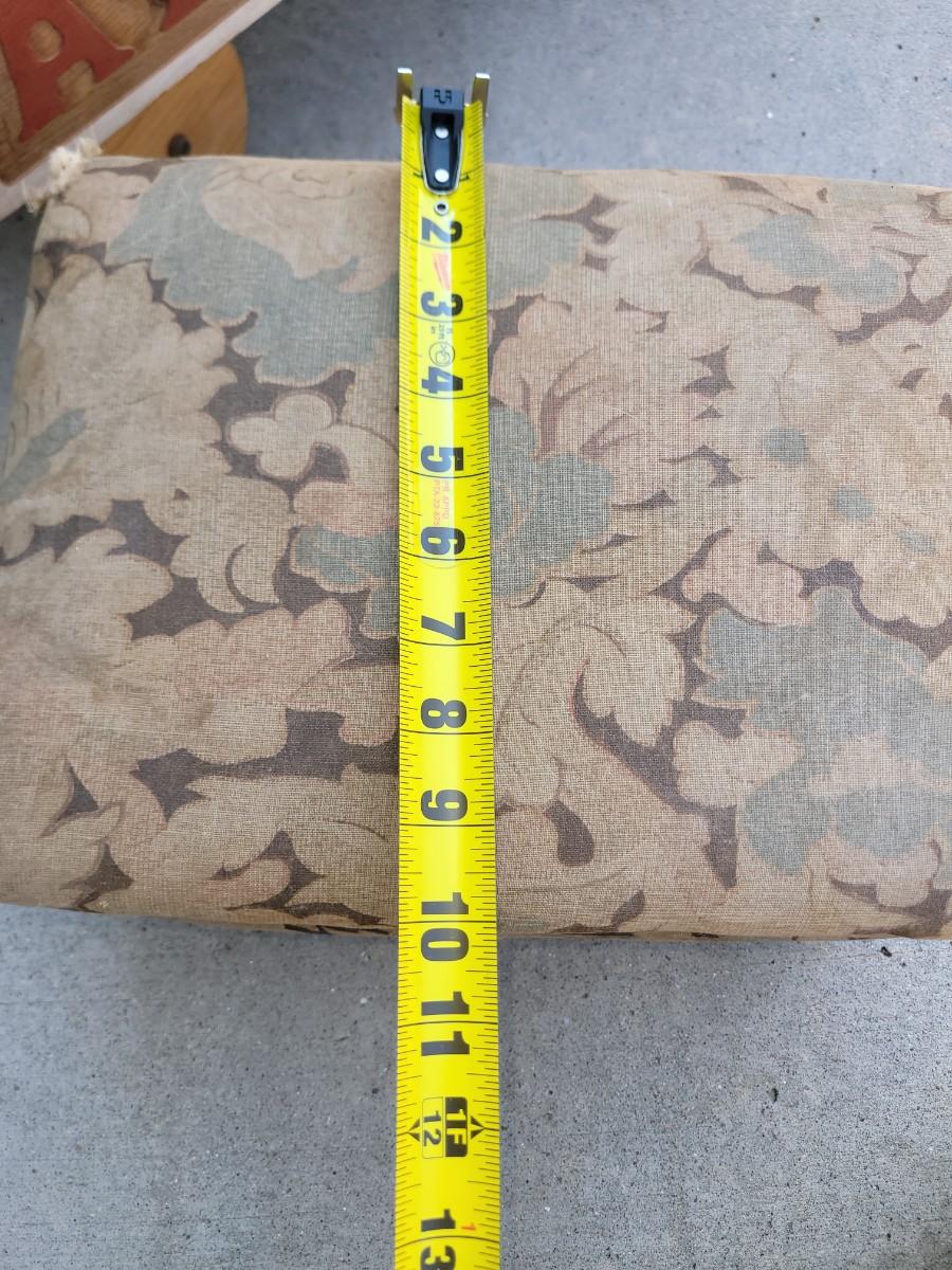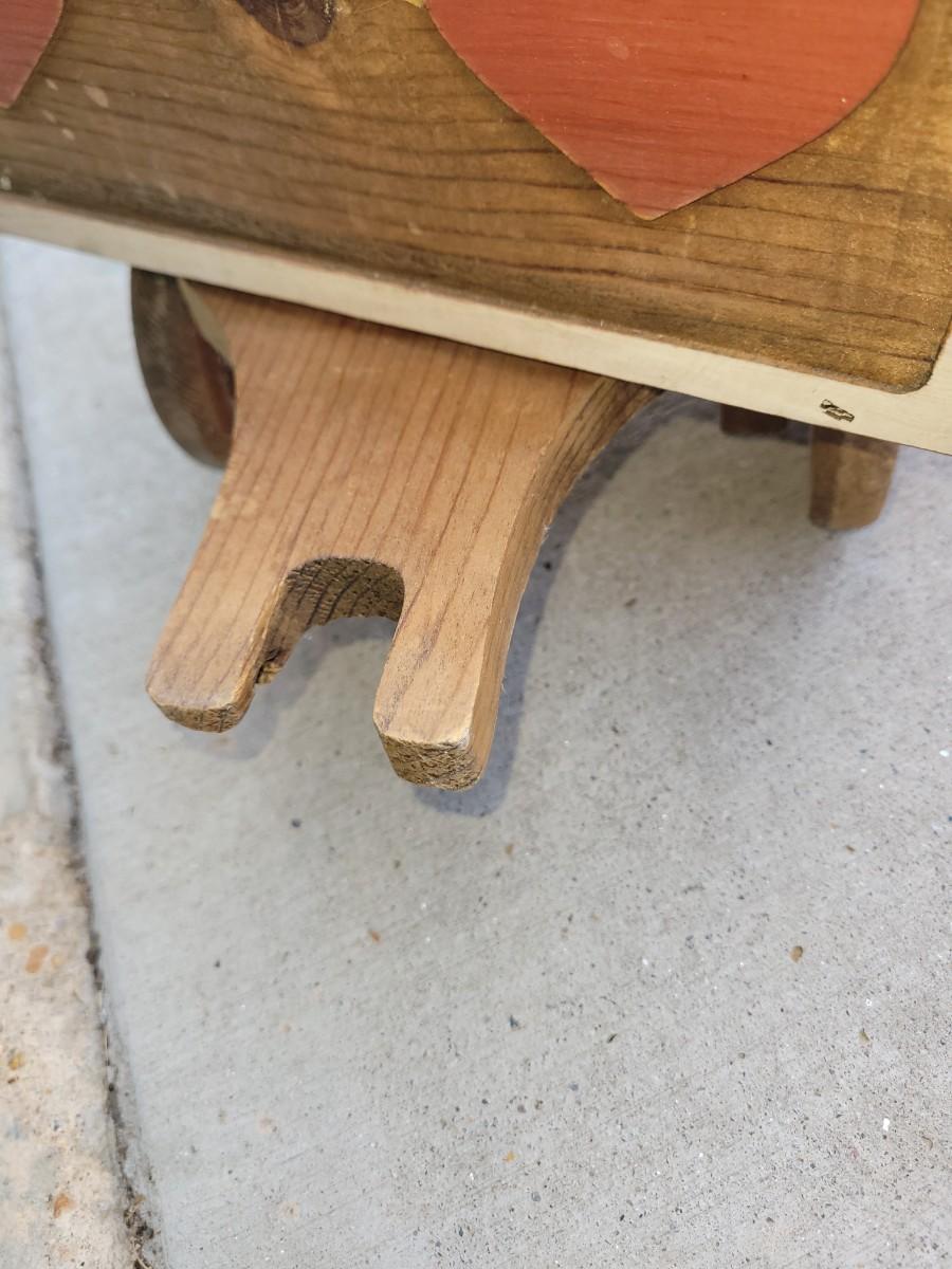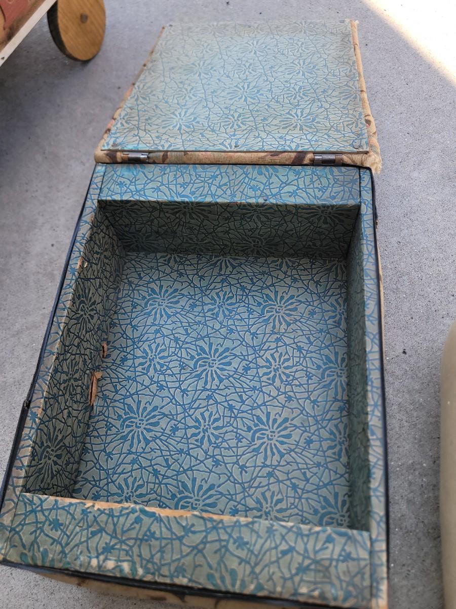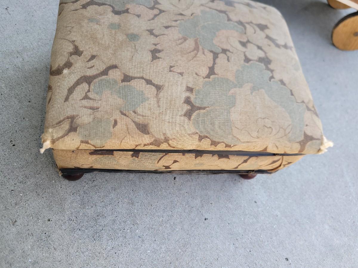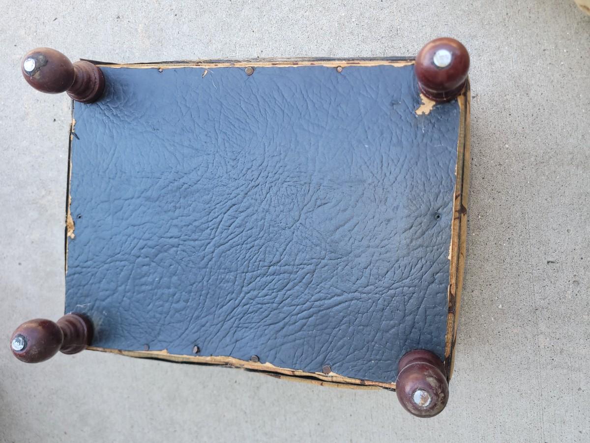 Cart has handle but it is not attached, see pics of stool for condition, it's 13" w x 11" deep and about 7" tall, awfully old no manufacturer found