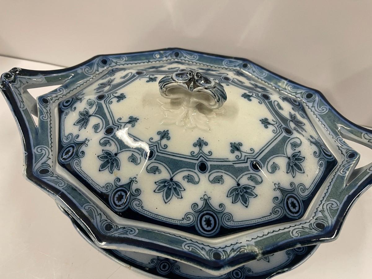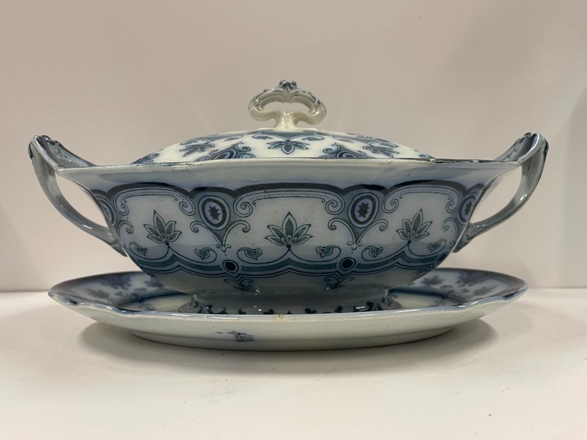 Antique Ford & Sons Dudley Burslem Flow Blue Serving Dish with Lid