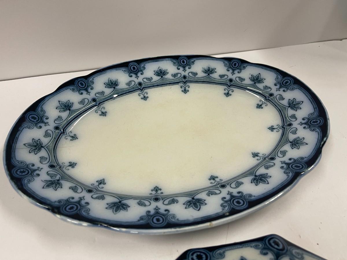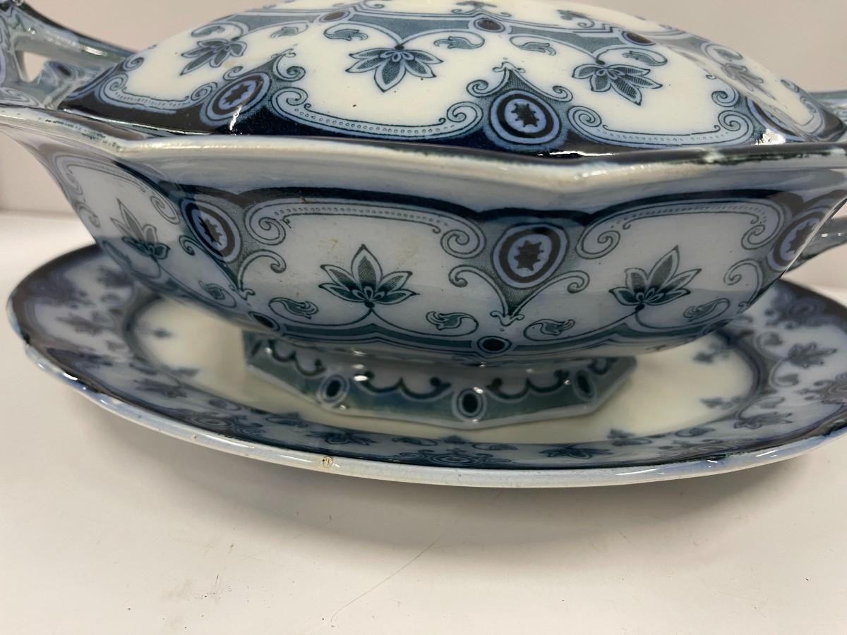 Antique Ford & Sons Dudley Burslem Flow Blue Serving Dish with Lid. Underplate is 11" x 8". Dish is approx 9". Please examine photos carefully for condition issues.
