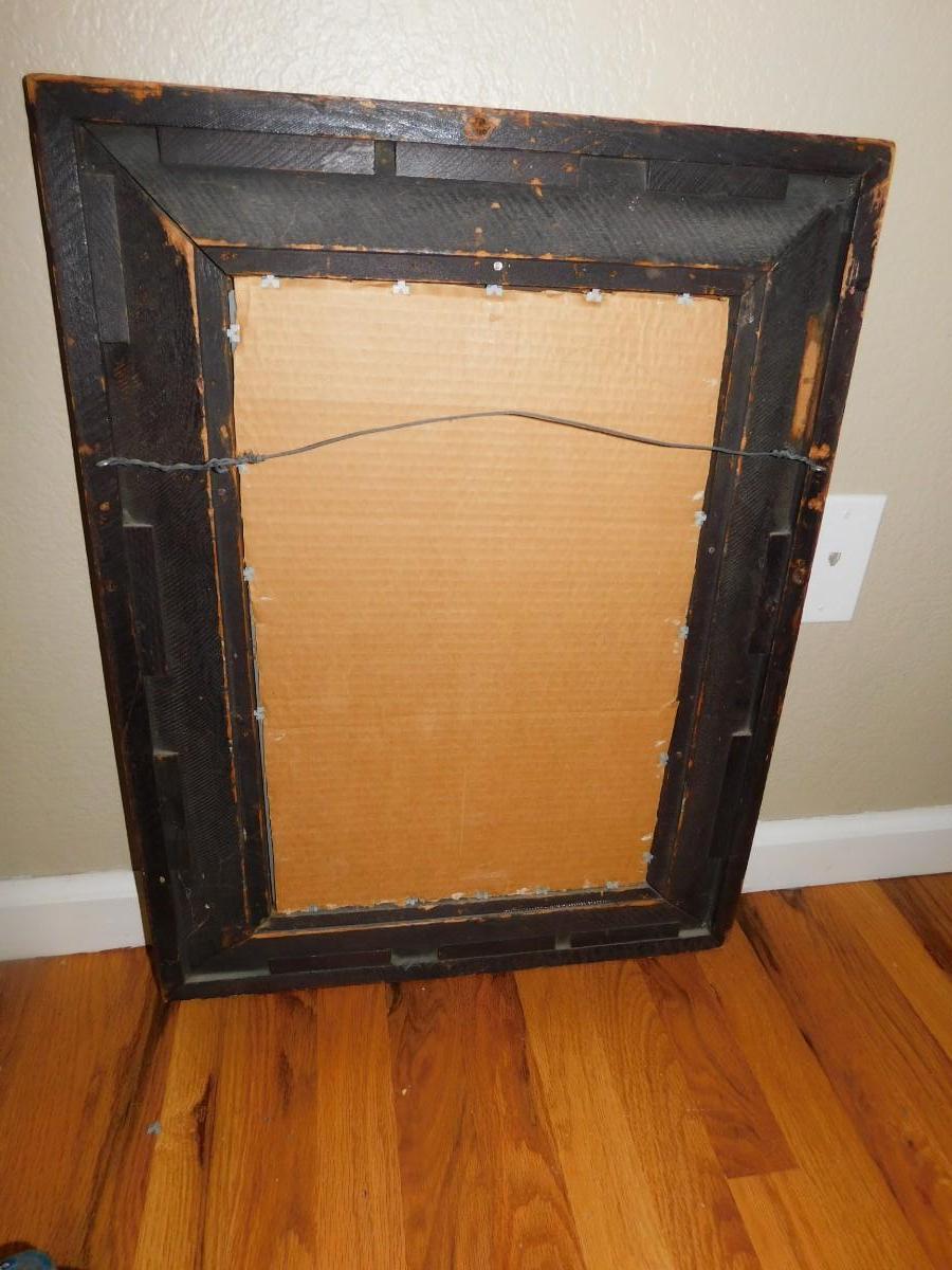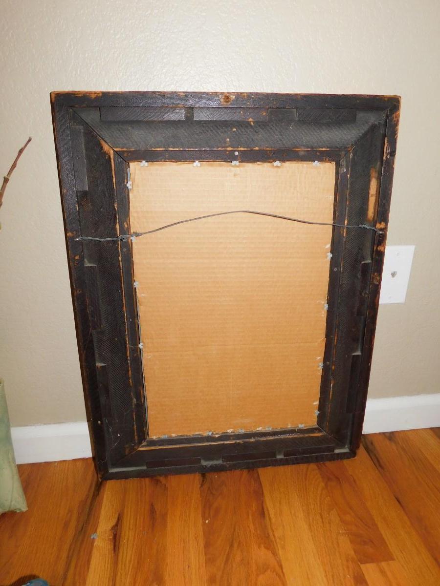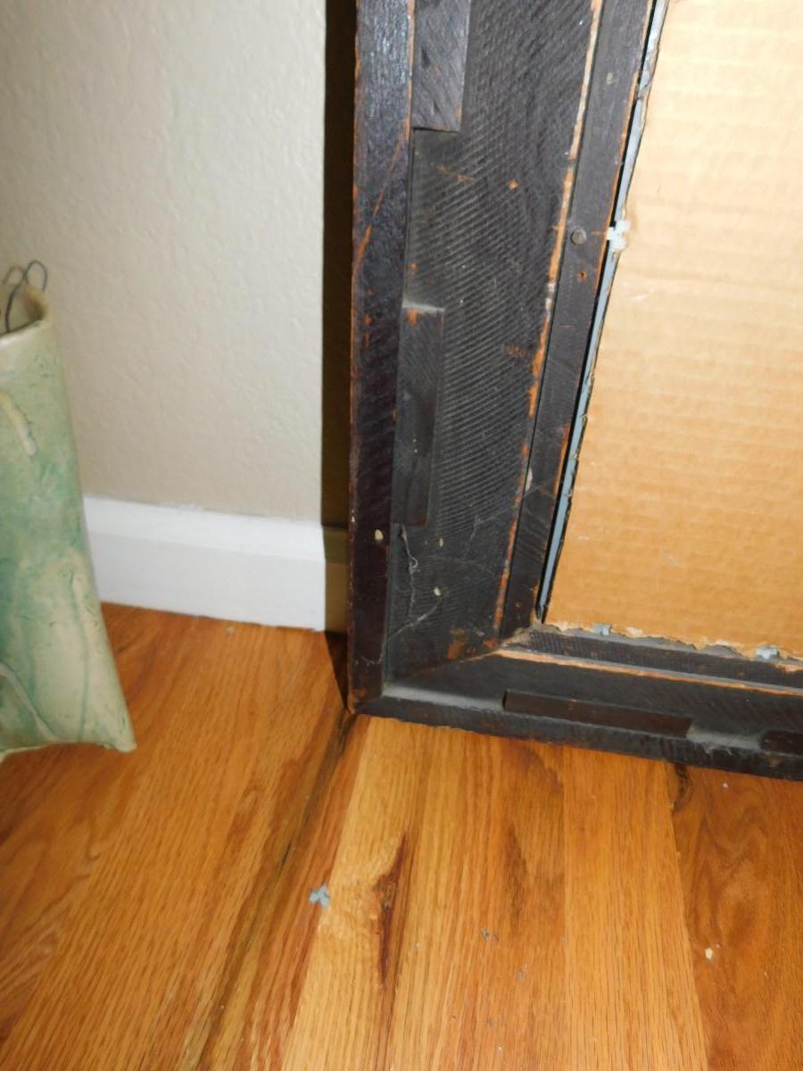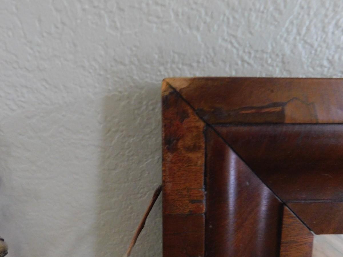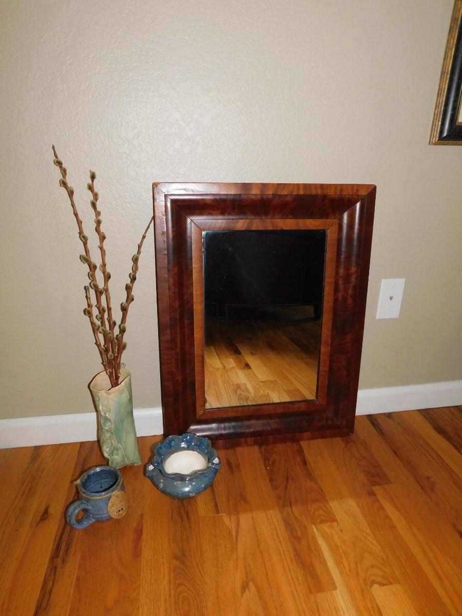 ANTIQUE FRAME WITH MIRROR AND A BIT OF POTTERY