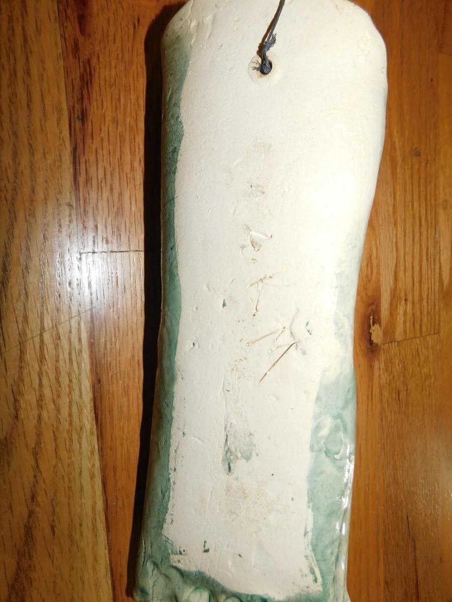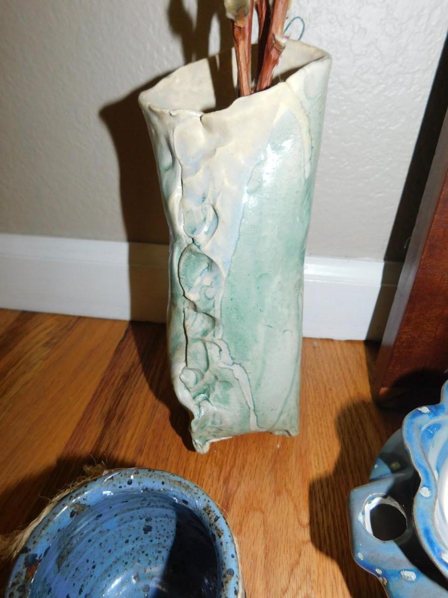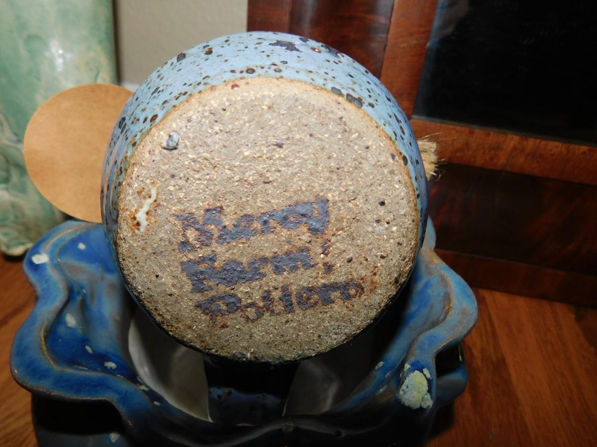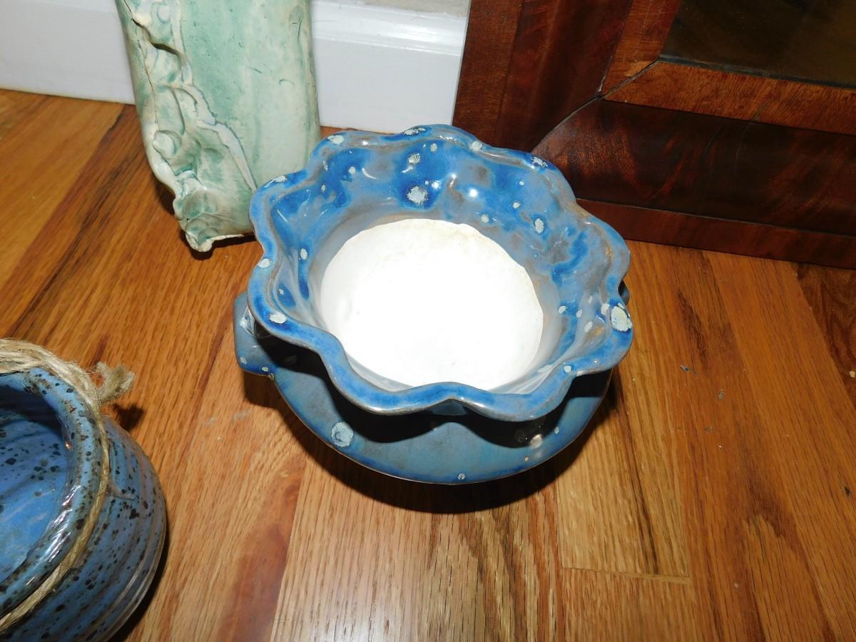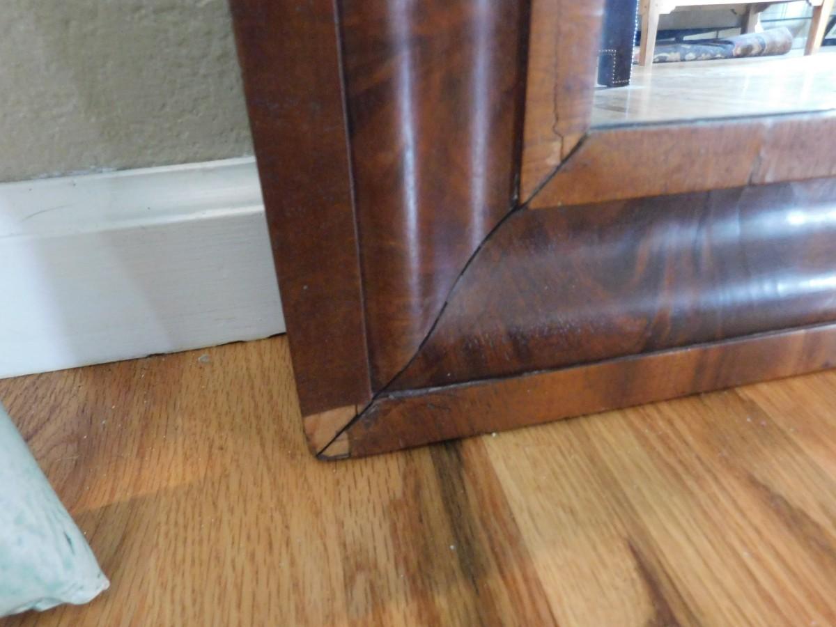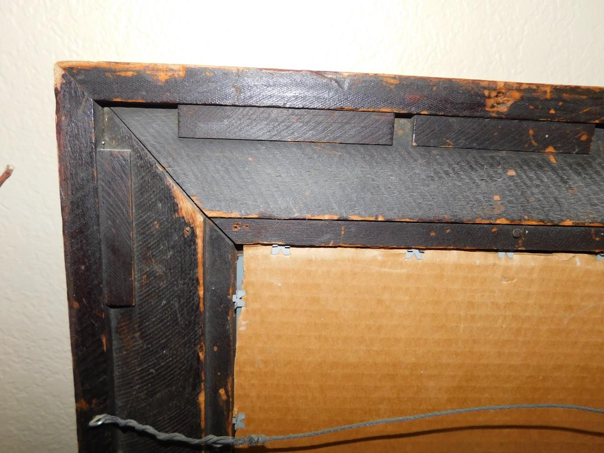 ANTIQUE FRAME WITH MIRROR AND A BIT OF POTTERY