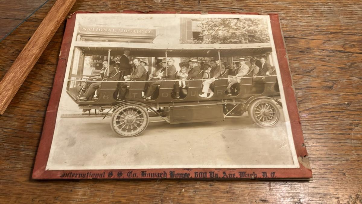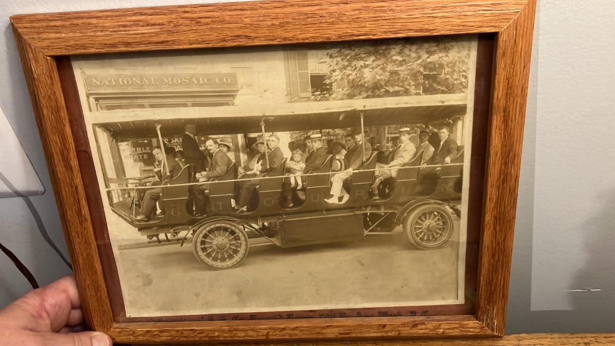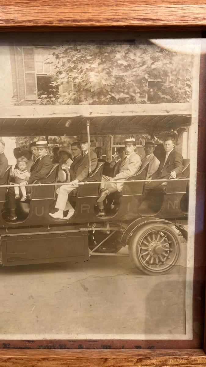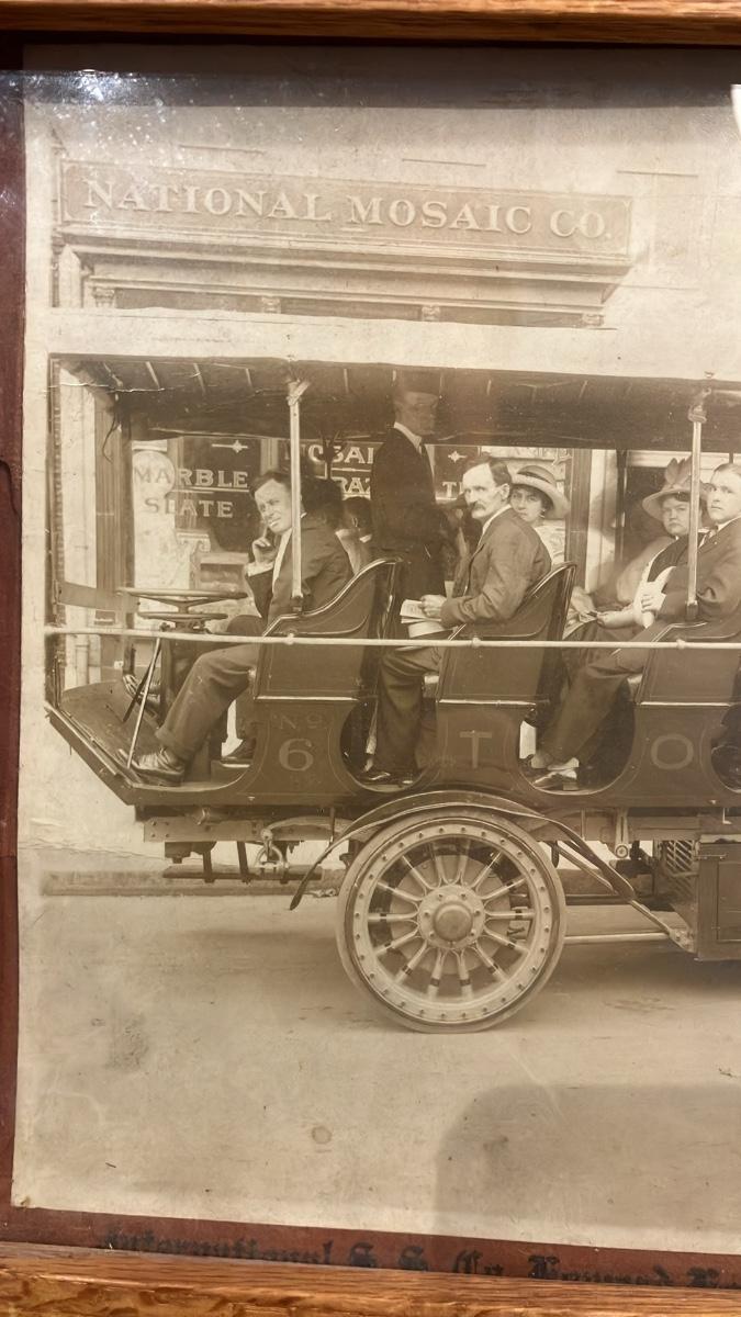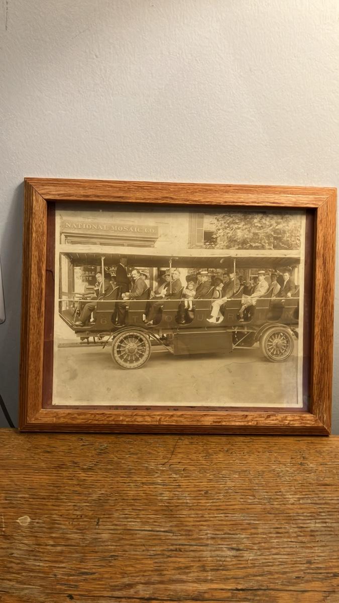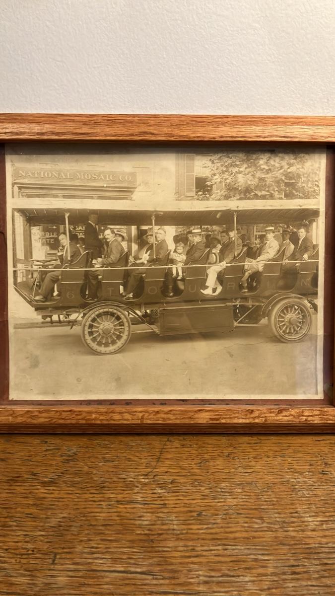 Antique Framed 1910s Photo: Early Electric Sightseeing Bus Tour in Washington DC