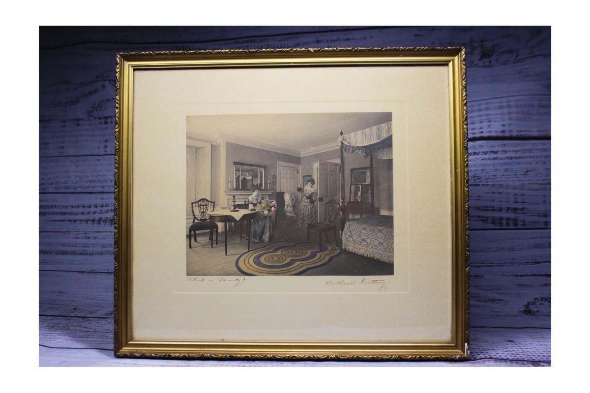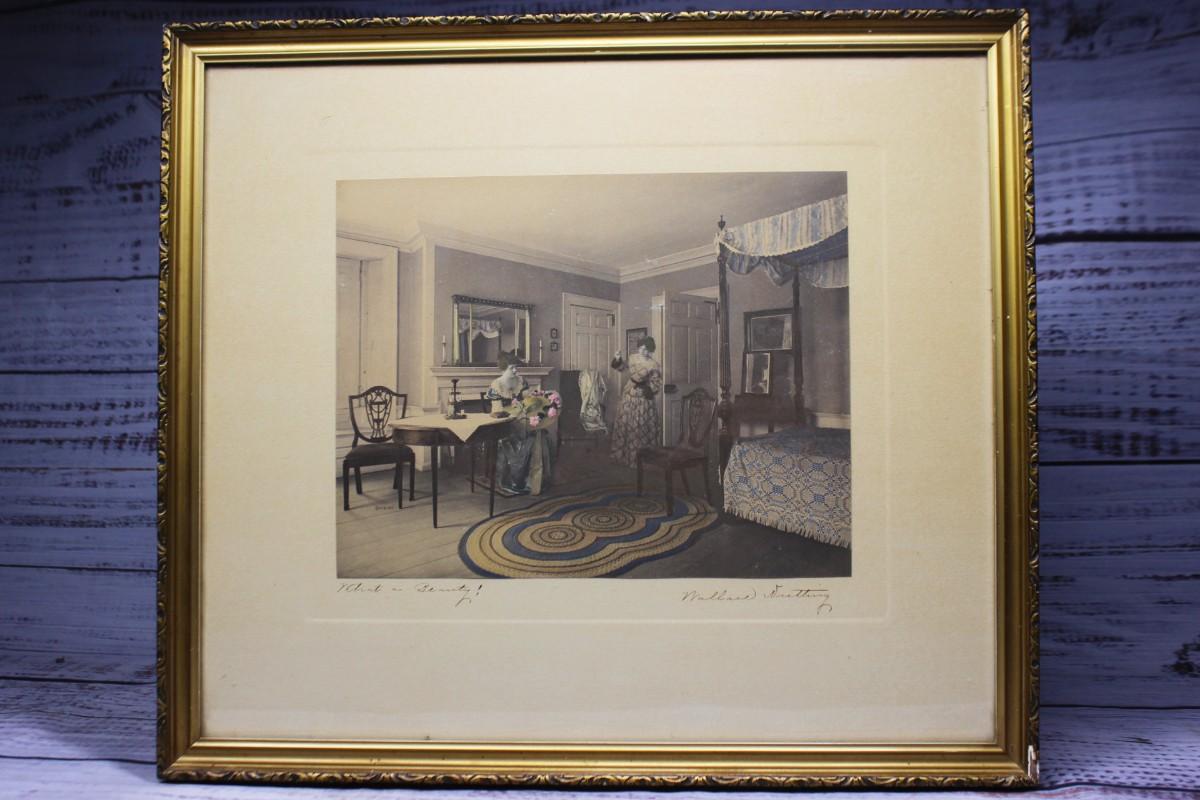 Antique Framed and Signed Platinotype Print Hand Colored by Wallace Nutting