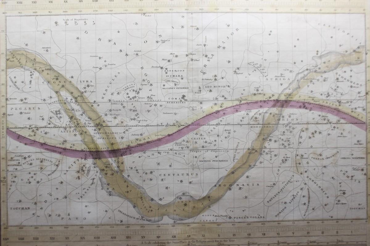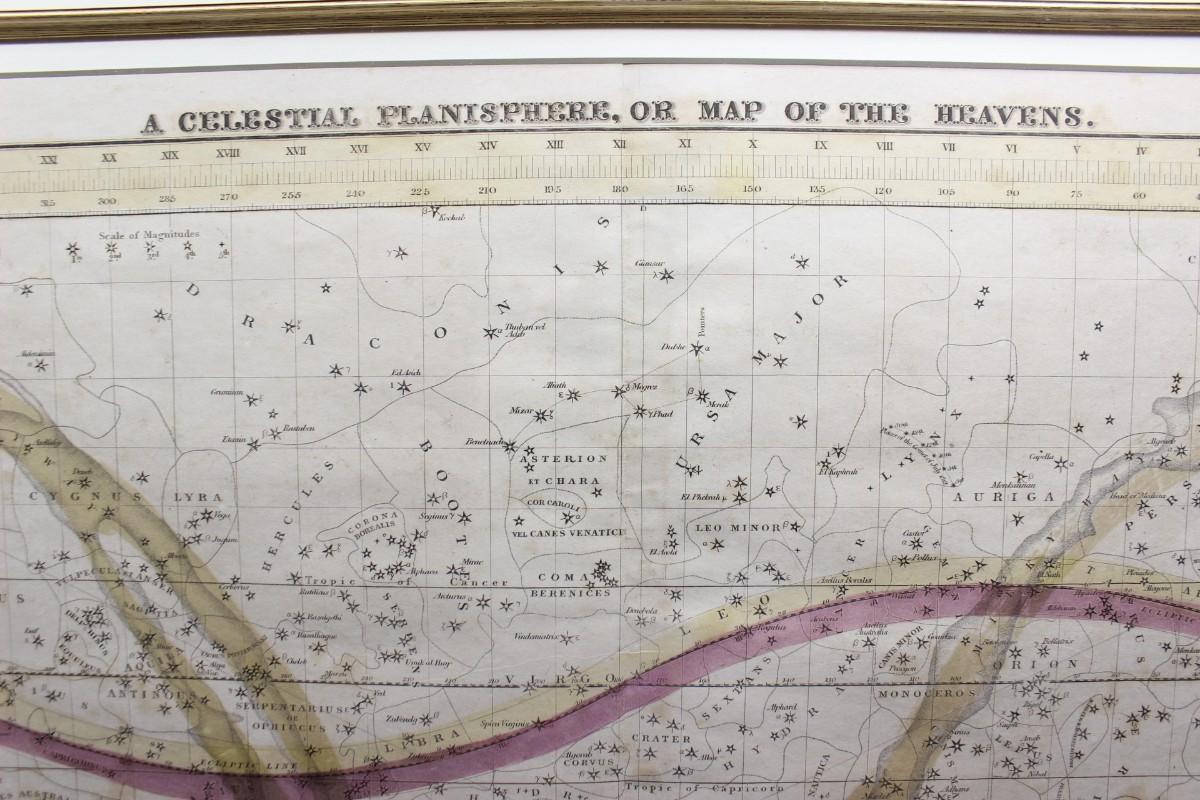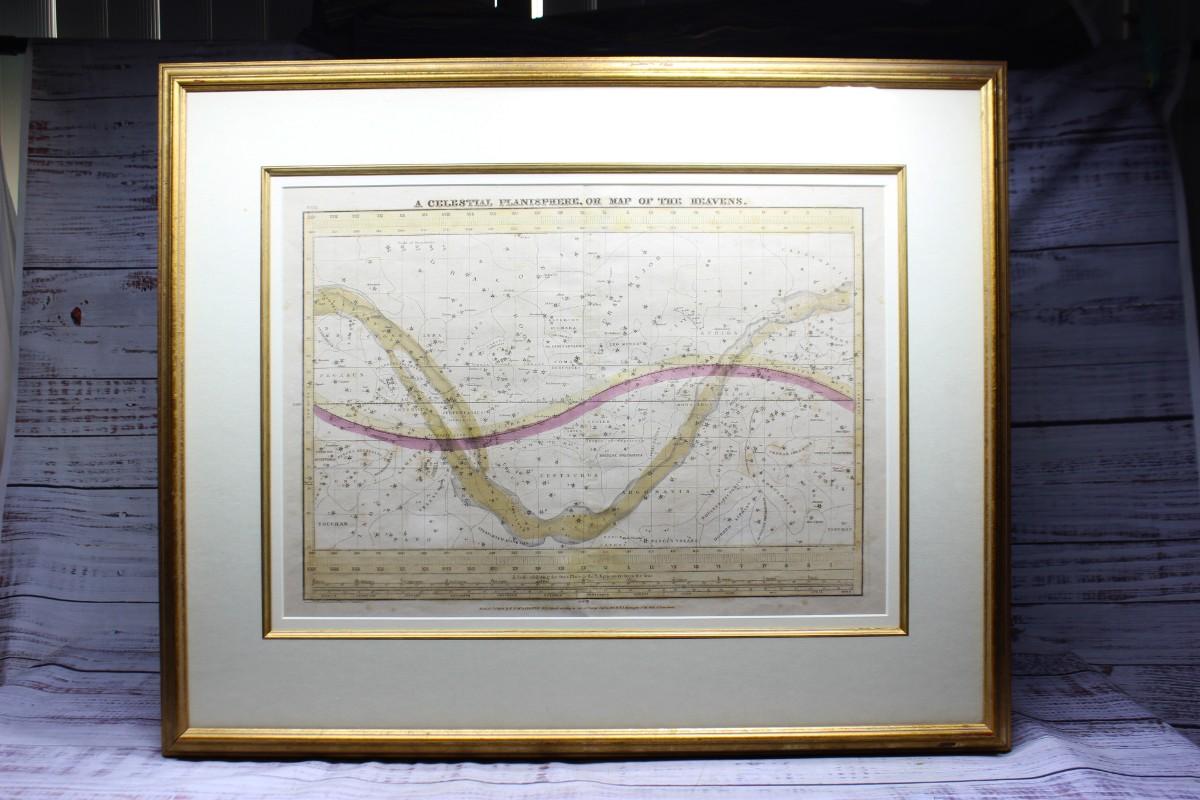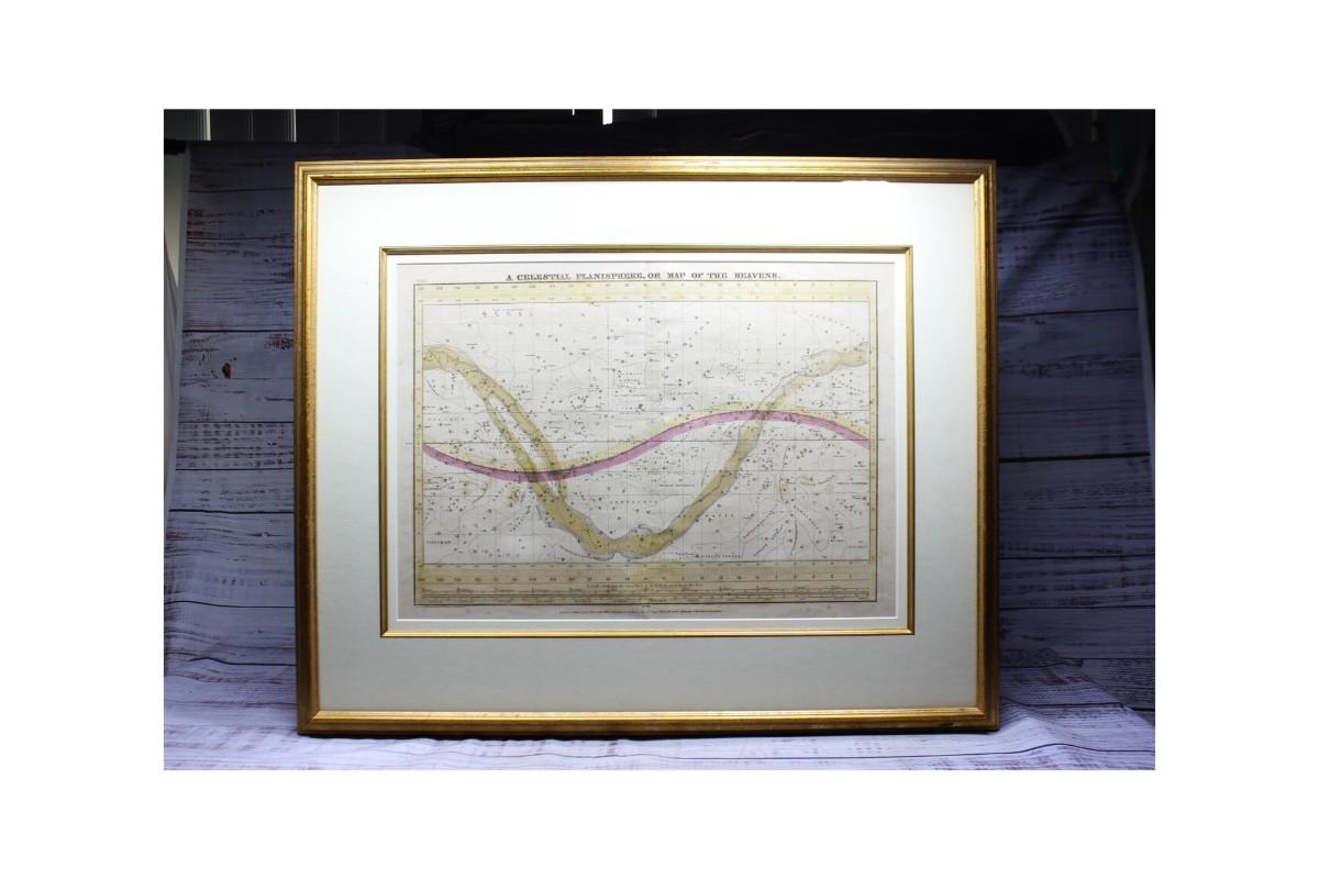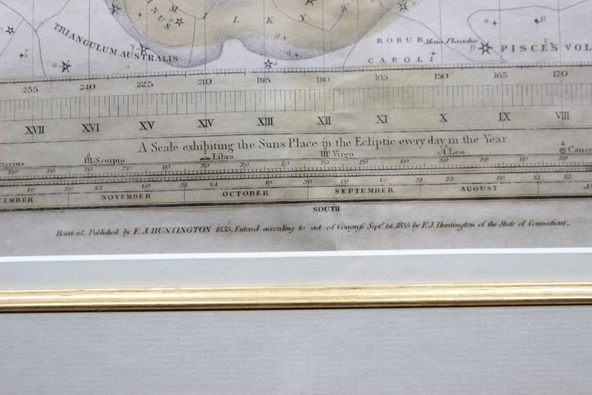 Antique Framed Astronomy Print Star Chart Map A Celestial Planisphere or Map of the Heavens F.J. Huntignton