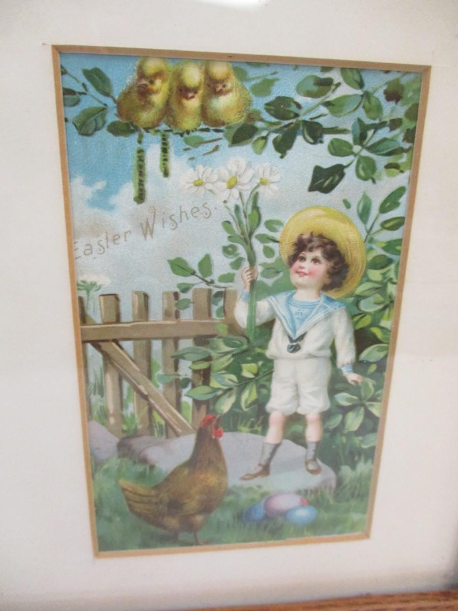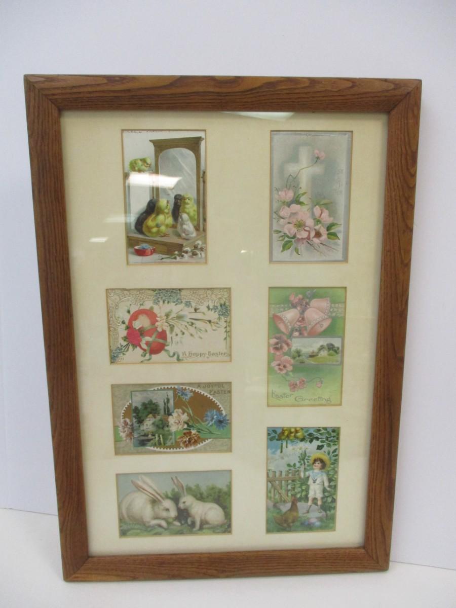 Antique Framed Easter Embossed Postcards. Shipping is by third party only such as UPS Store. Auction firm will make sure item is available for buyer's shipper of choice to pick item up and do all packing and shipping for the buyer. Buyer agrees to pay all fees associated with the shipping of this item and to make arrangements for its pick up from our auction house.