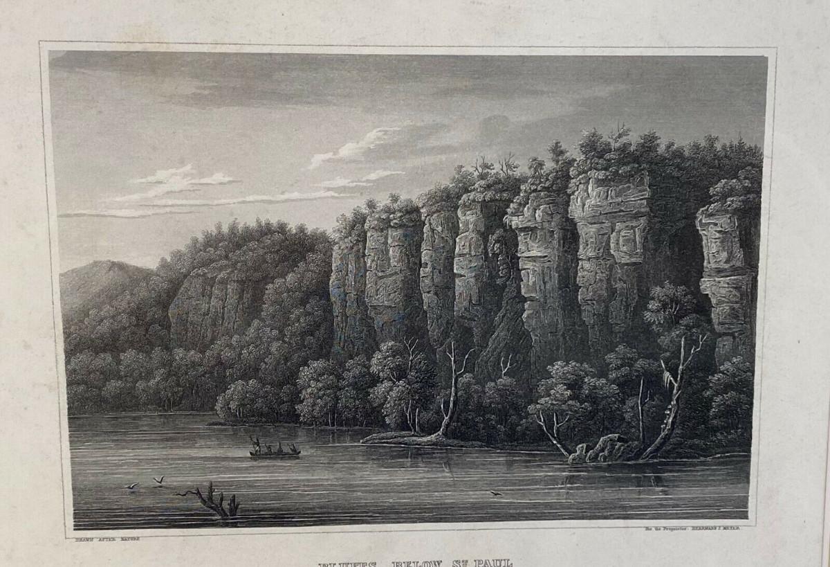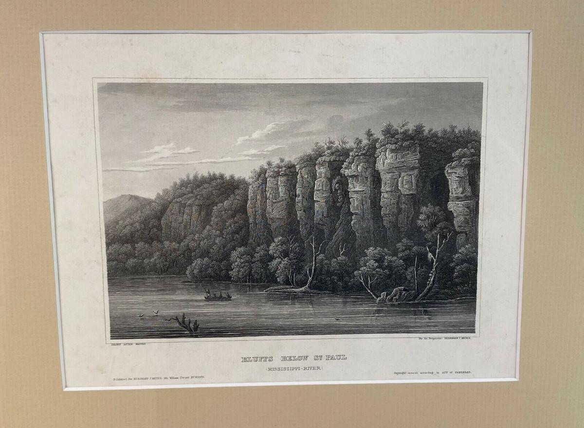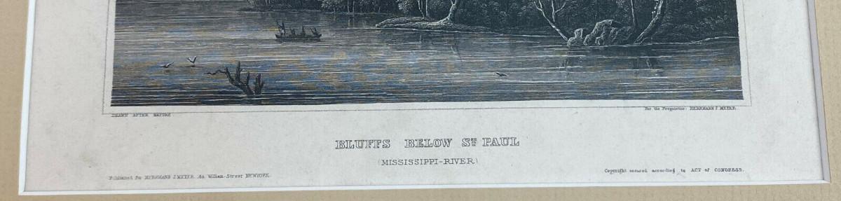 antique framed engraving BLUFFS BELOW ST PAUL HERRMANN J MEYER c1850