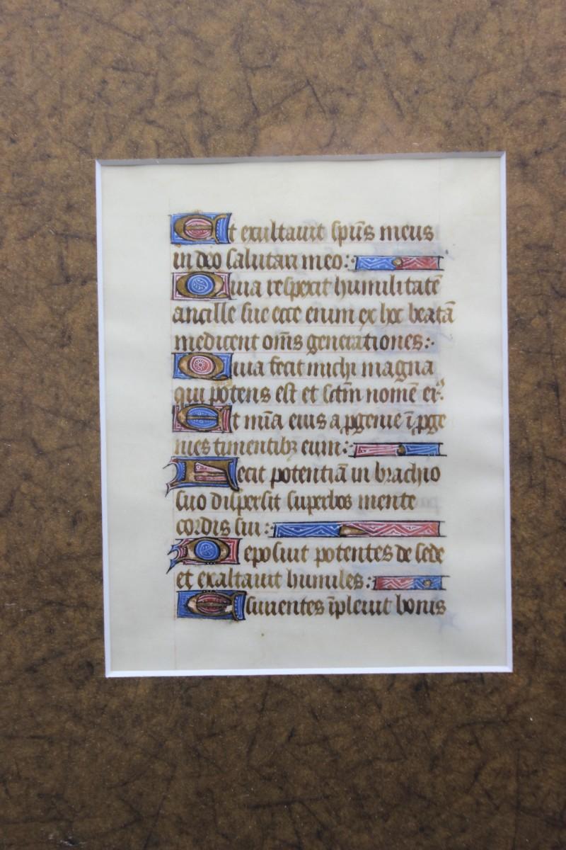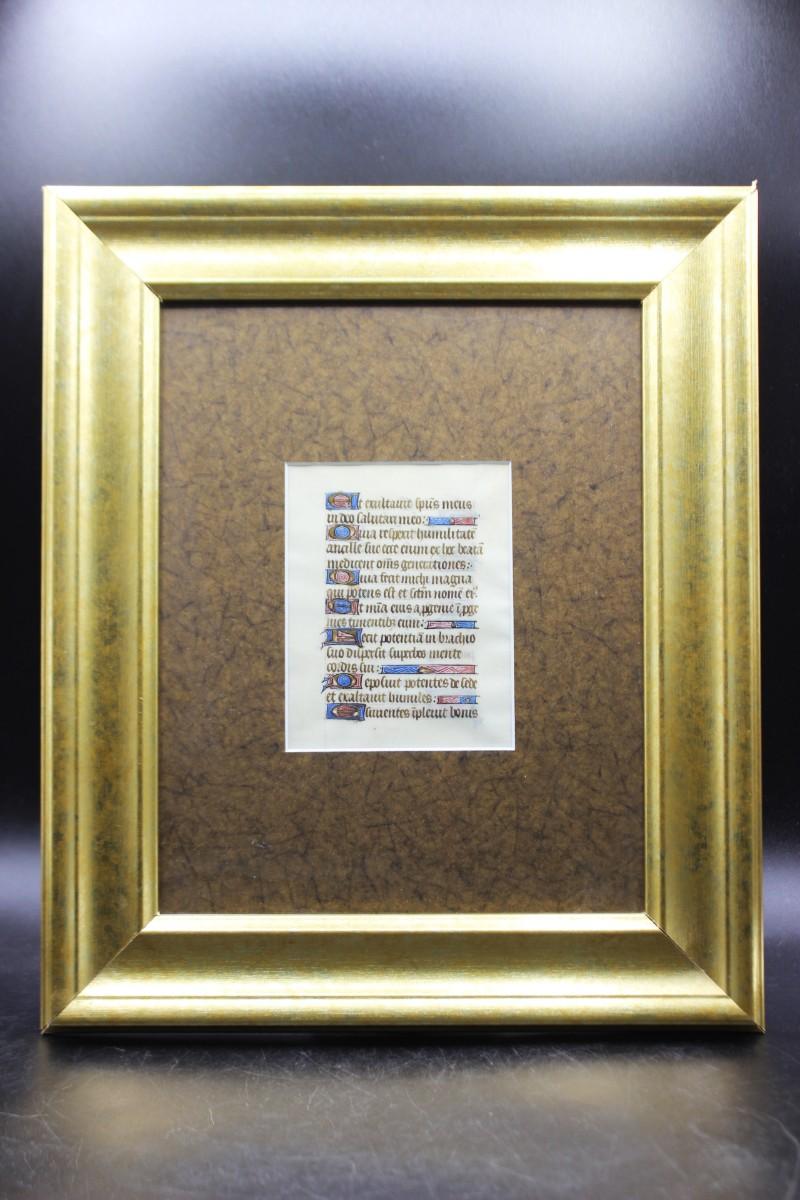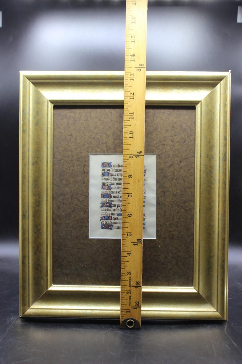 Antique Framed Medieval Styled Small Manuscript, there is no significant damage to the frame or the protective glass and is in good displayable condition. Check pictures for more details and for sizing.