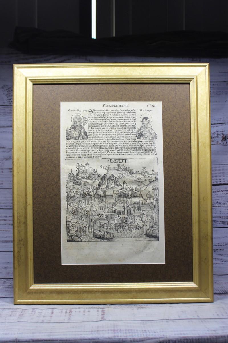 Antique Framed Nuremberg Chronicle Hartmann Schedel Styled Page