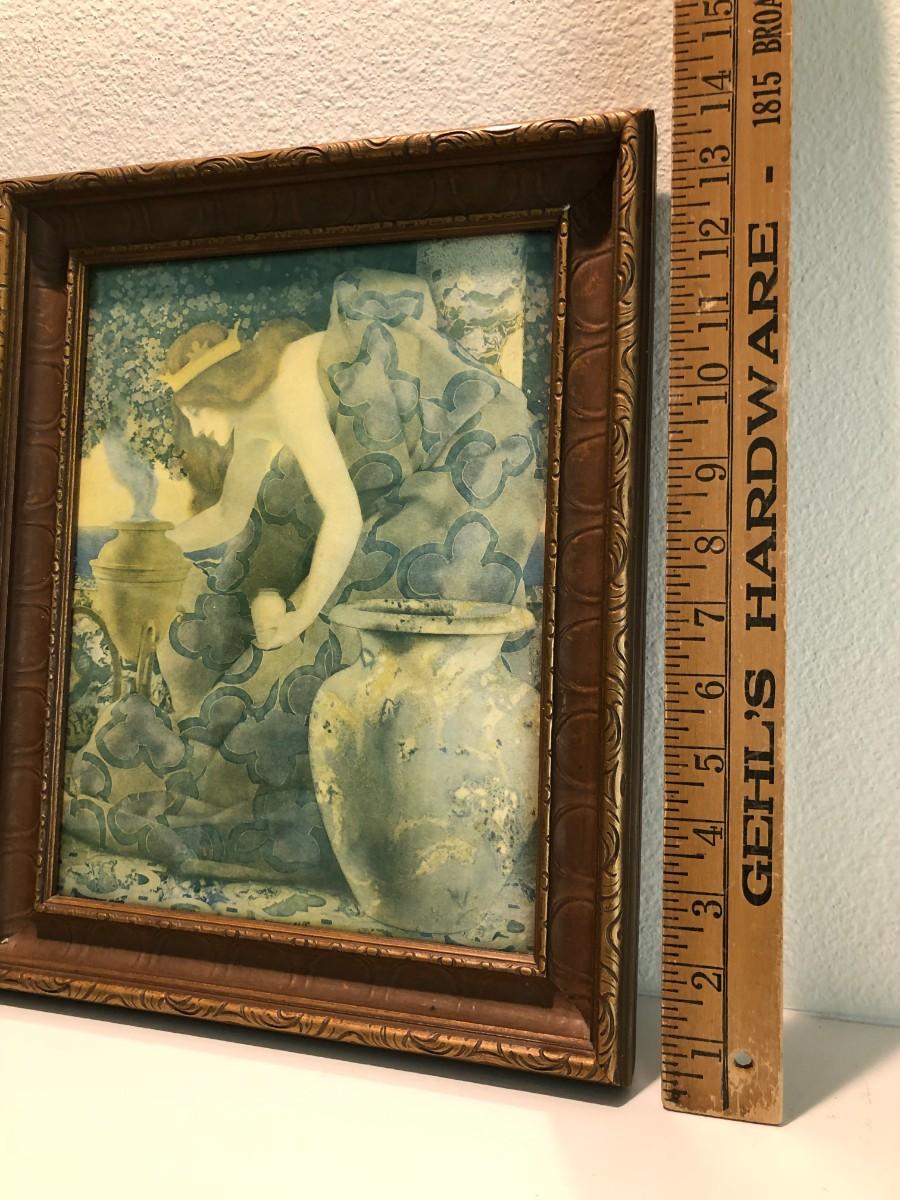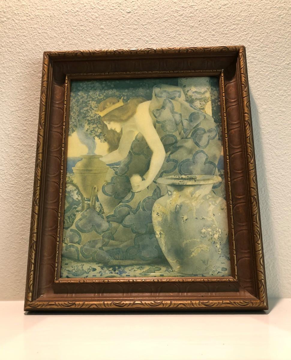 Antique Framed Print of Gulnare of the Sea by Maxfield Parrish circa 1910. In very good condition. Features Queen Gulnare of the Sea in a scene from Fantasies and Fairy-Tales.