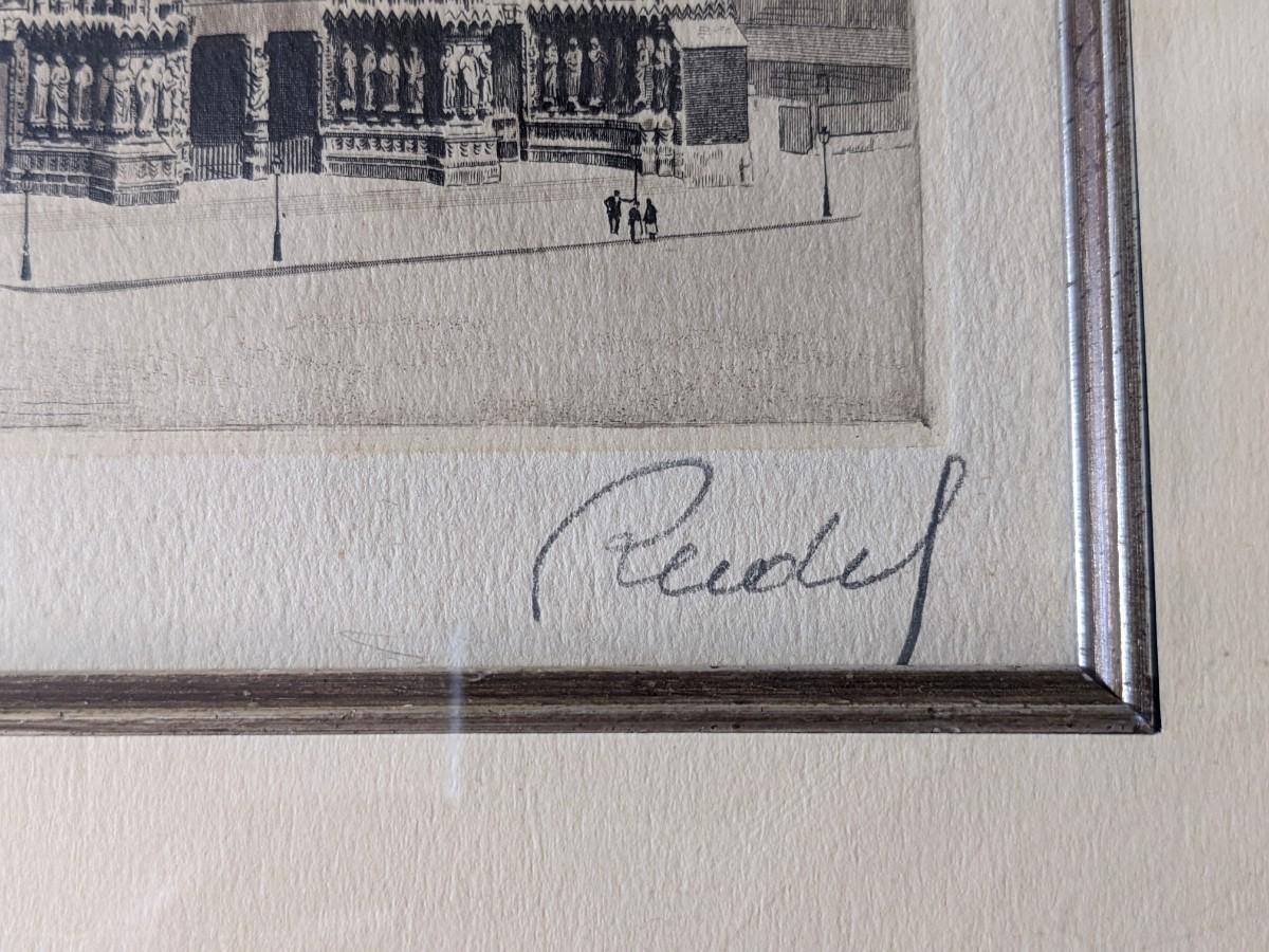 Antique Framed Signed Etching of Reims Cathedral by Reidel