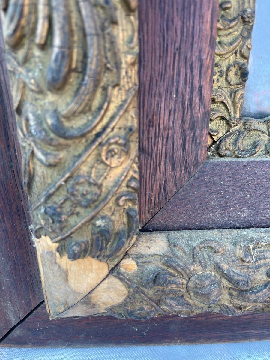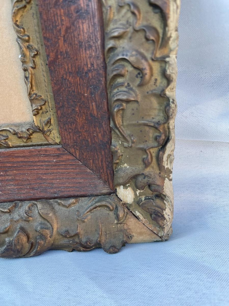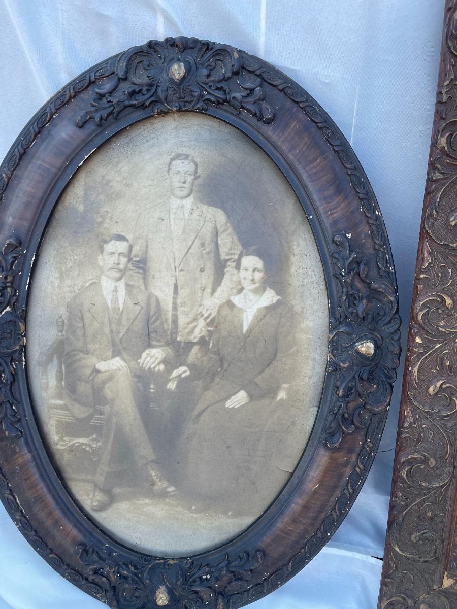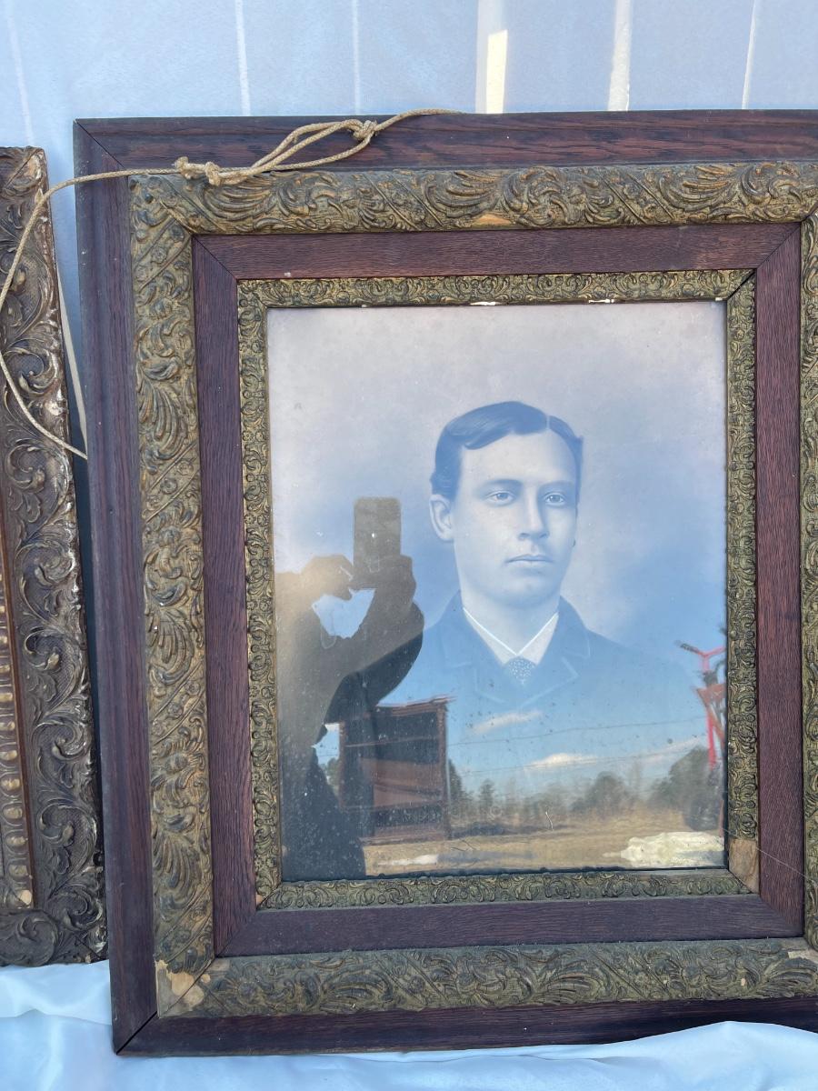 Lot of antique frames with pictures. All frames and pictures have multiple condition issues, but they’re still beautiful and could be used and possibly restored. I feel the condition lends to the look!! Would make a great focal point for a special room! No shipping. On these.