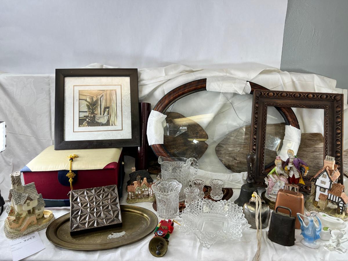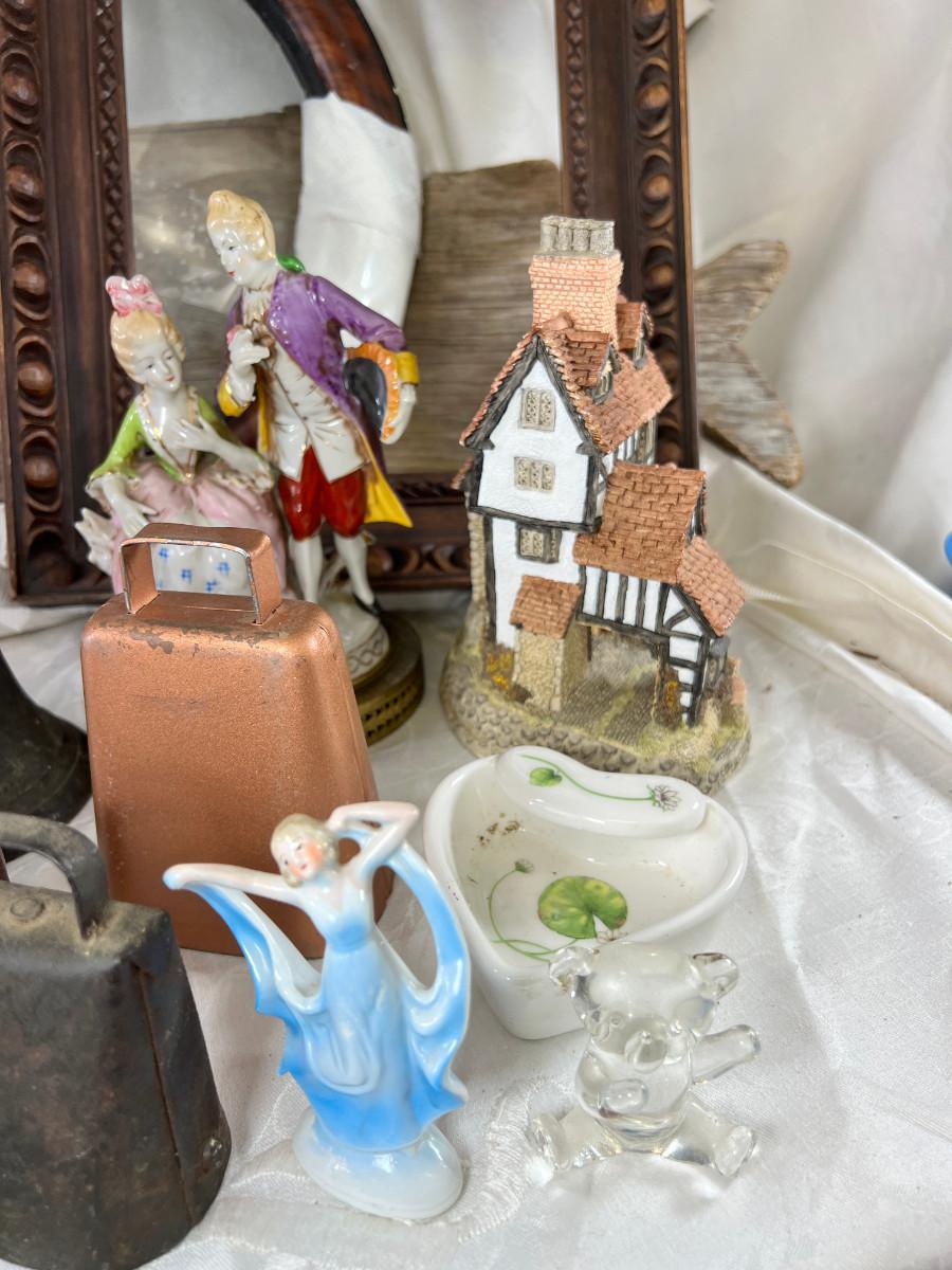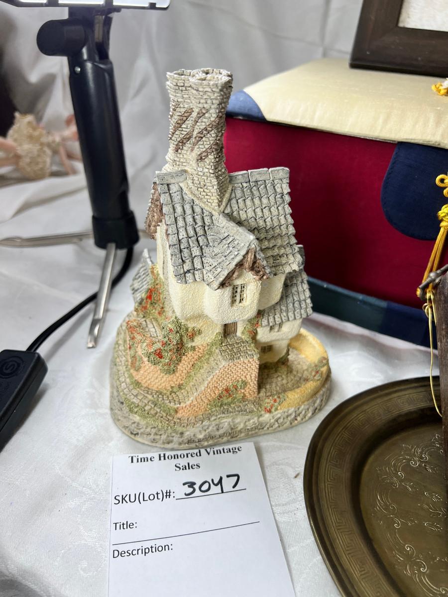 Vintage glass ware, jewelry box, Figurines. David Winter resin cottage. No shipping